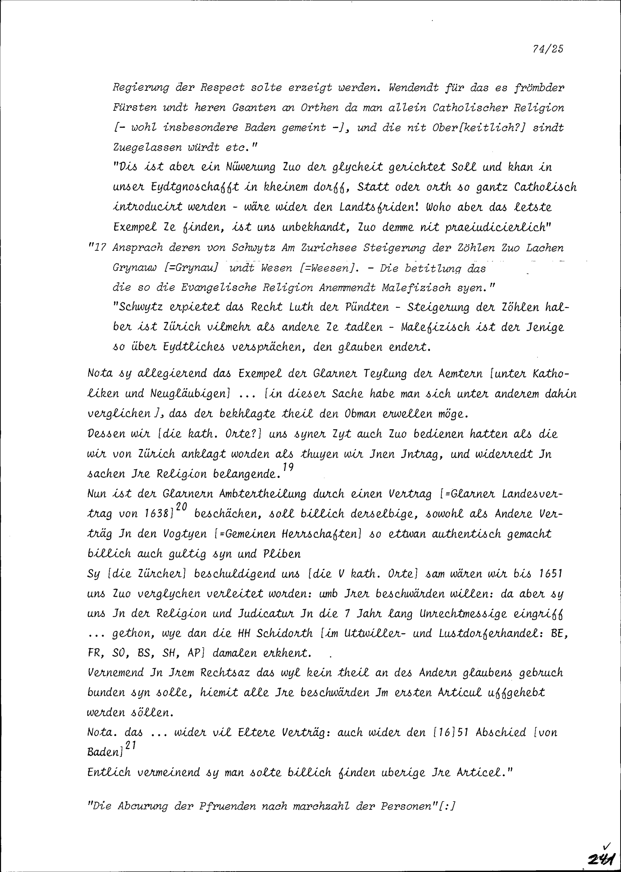 Schriften in Sachen Fortsetzung der Friedensverhandlungen nach dem Ersten Villmergerkrieg, mit ausführlicher Antwort von Beat II. Zurlauben, Zuger Tagsatzungsgesandter