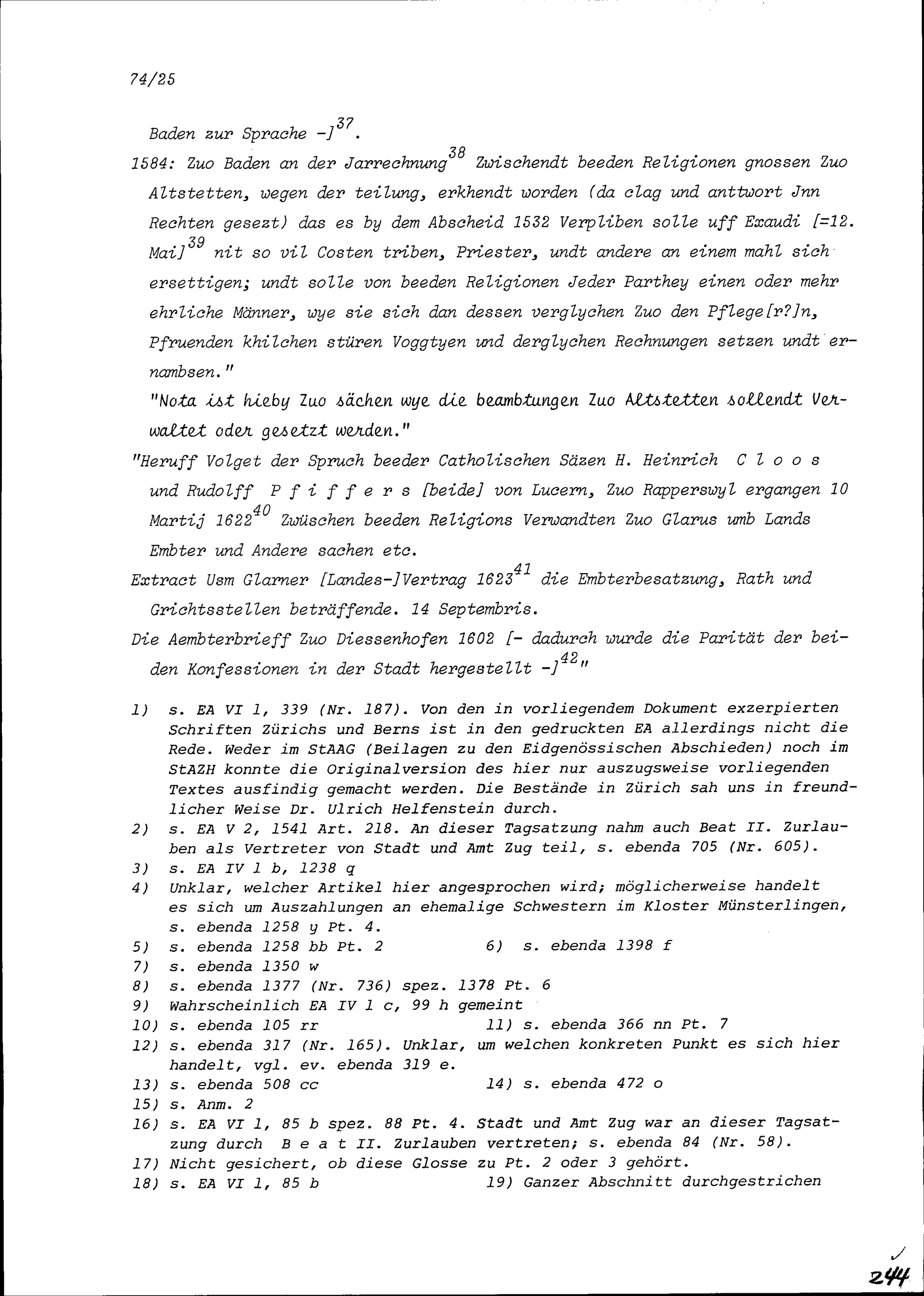 Schriften in Sachen Fortsetzung der Friedensverhandlungen nach dem Ersten Villmergerkrieg, mit ausführlicher Antwort von Beat II. Zurlauben, Zuger Tagsatzungsgesandter