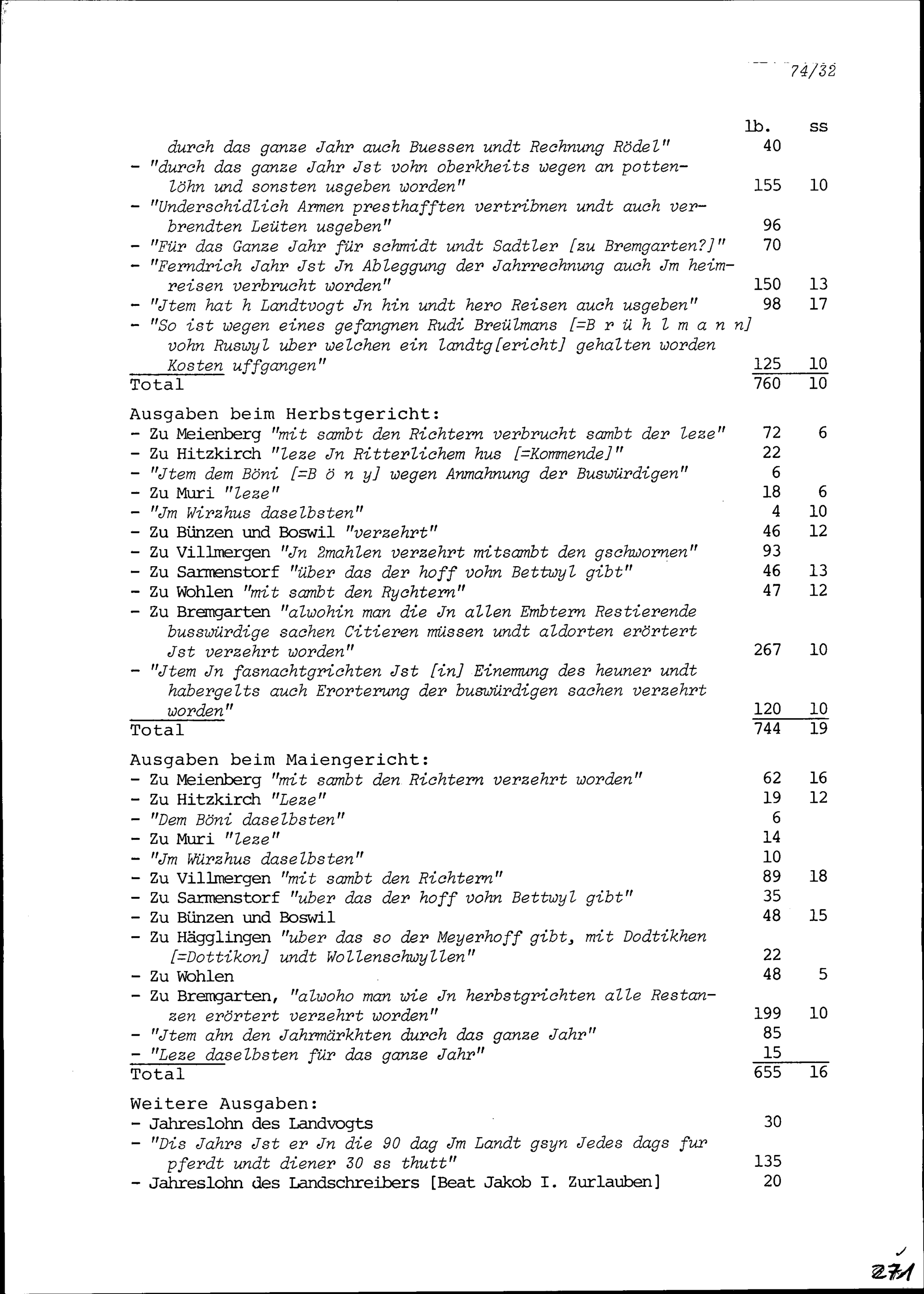 Landvogteirechnung der Freien Ämter unter Johann Peter Trinkler, Landvogt