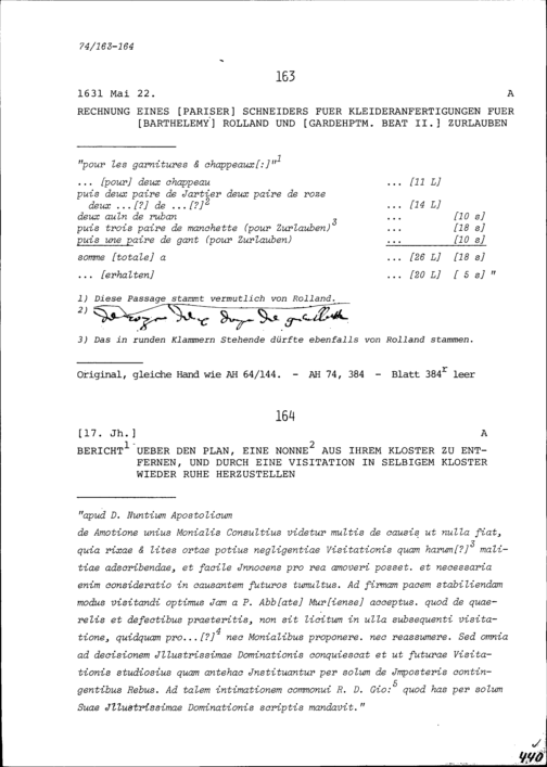 Rechnung eines Pariser Schneiders für Kleideranfertigungen für Barthélémy Rolland und für Beat II. Zurlauben, Gardehauptmann