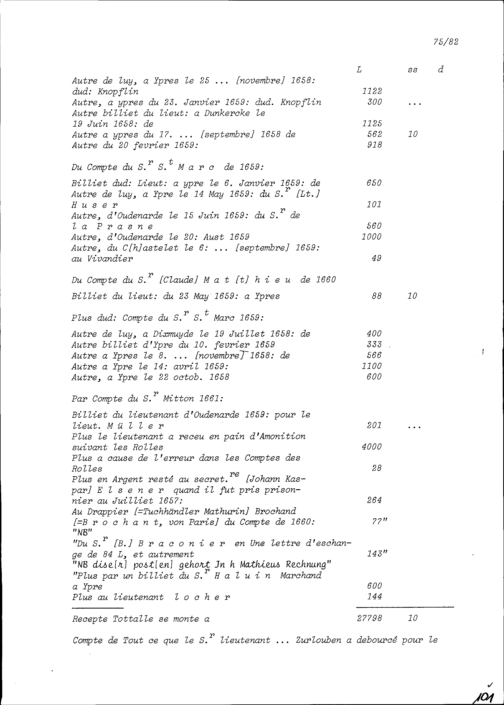 Abrechnung von Heinrich II. Zurlauben, Gardehauptmann, mit Konrad IV. Zurlauben, seinem Bruder und Gardeleutnant