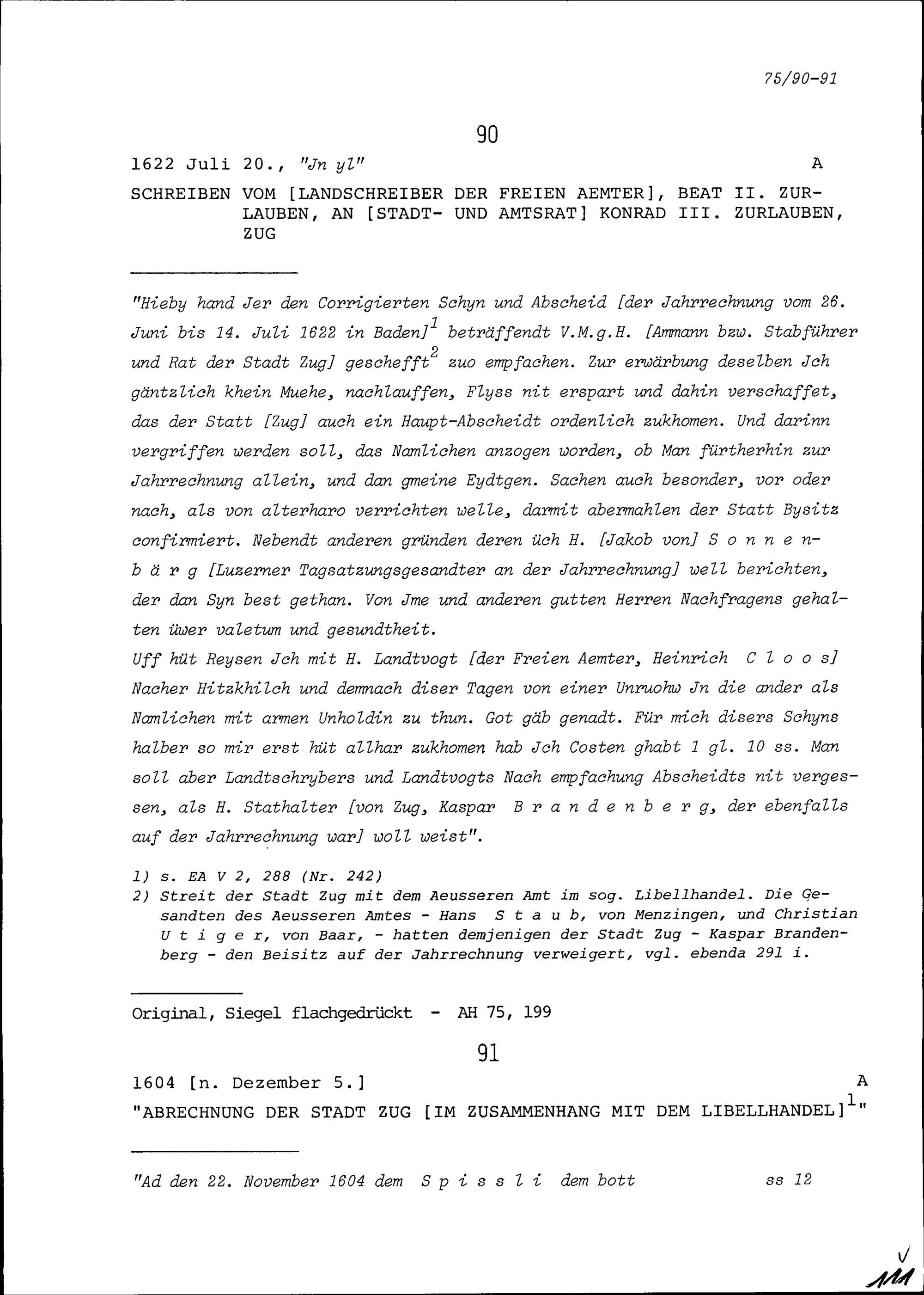 Schreiben von Beat II. Zurlauben, Landschreiber der Freien Ämter, an Konrad III....