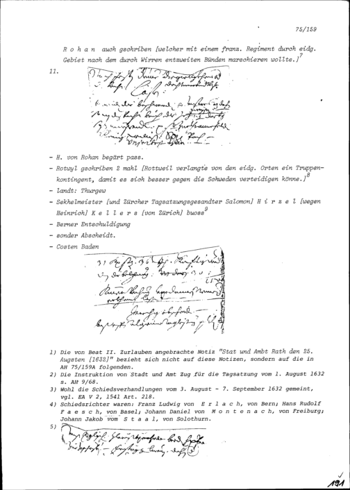 Notiz von Beat II. Zurlauben, Zuger Tagsatzungsgesandter, über die Tagsatzung der Elf Orte in Baden vom 1. August 1632 sowie die Schiedsverhandlungen vom 3. August bis 7. September 1632 betreffend Matrimonial- und Kollaturstreit im Thurgau und Rheintal