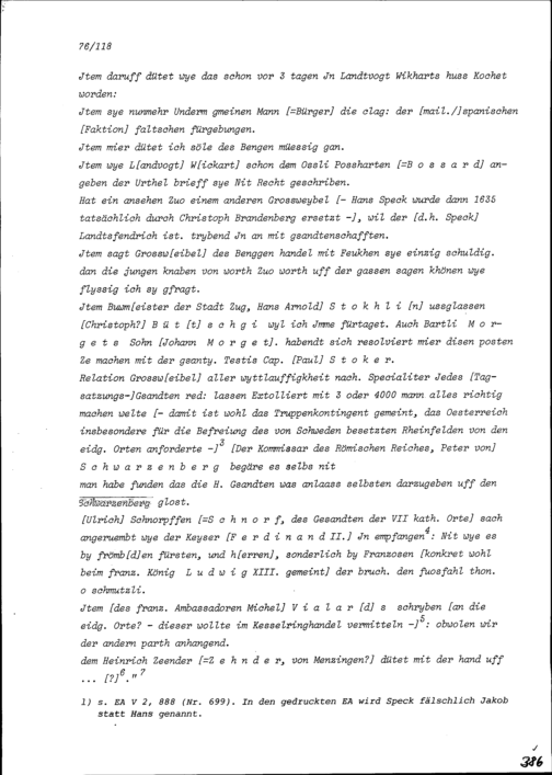 Notiz von Beat II. Zurlauben, Ammann, über die Gemeindeversammlung der Stadt Zug vom 10. August 1634