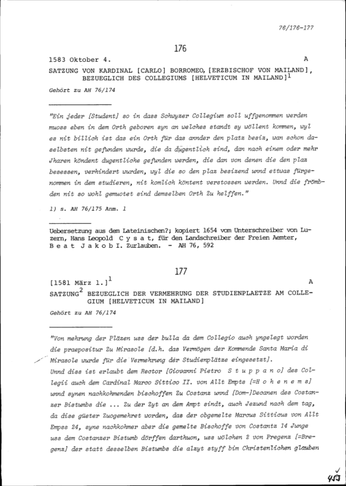 Satzung von Karl Borromeo, Kardinal und Erzbischof von Mailand, bezüglich des Kollegiums Helveticum in Mailand