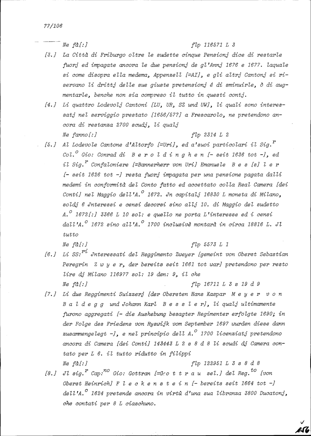 Abrechnung der Sieben Katholischen Orte und Abtei Sankt Gallen mit König von Spanien Karl II. über die Pensionen und geleisteten Solddienste