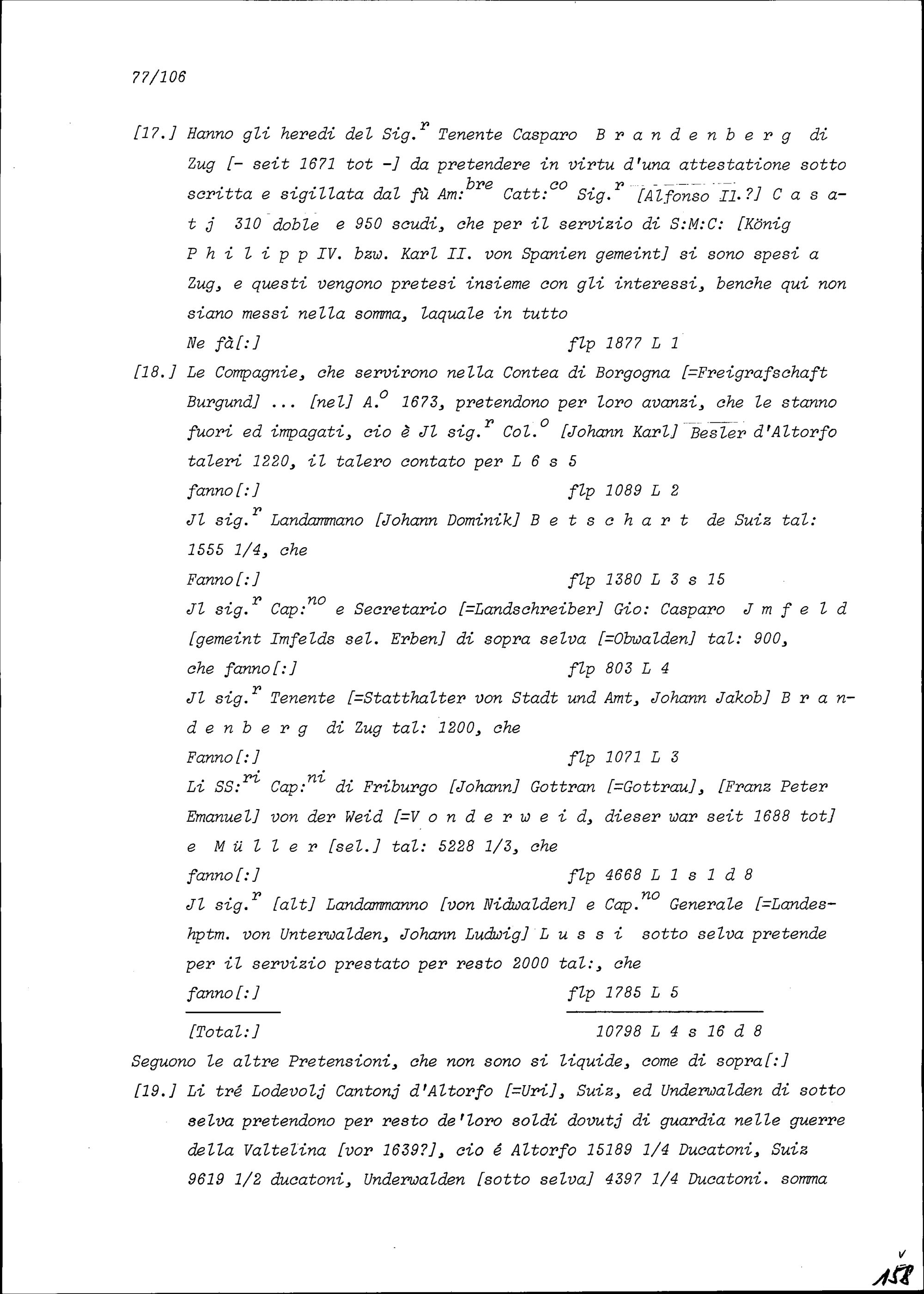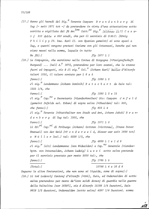 Abrechnung der Sieben Katholischen Orte und Abtei Sankt Gallen mit König von Spanien Karl II. über die Pensionen und geleisteten Solddienste