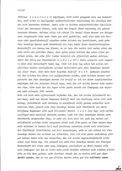Schreiben von Franz Wilhelm Scherer an Ammann und Rat von Stadt und Amt Zug