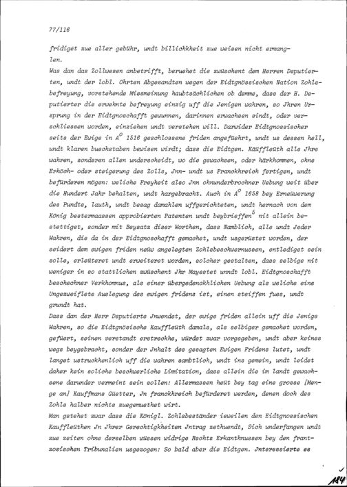 Resolution der Gesandten an der Jahrrechnung in Baden auf den Bericht von François Mouslier, Gesandter des Königs
