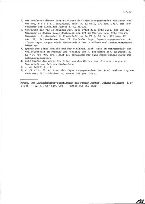 Überlegungen der Fünf Katholischen Orte zu den Beschwerden von Zürich und Bern, bei den Friedensverhandlungen vom 19. April bis 14. Juni 1656 in Baden