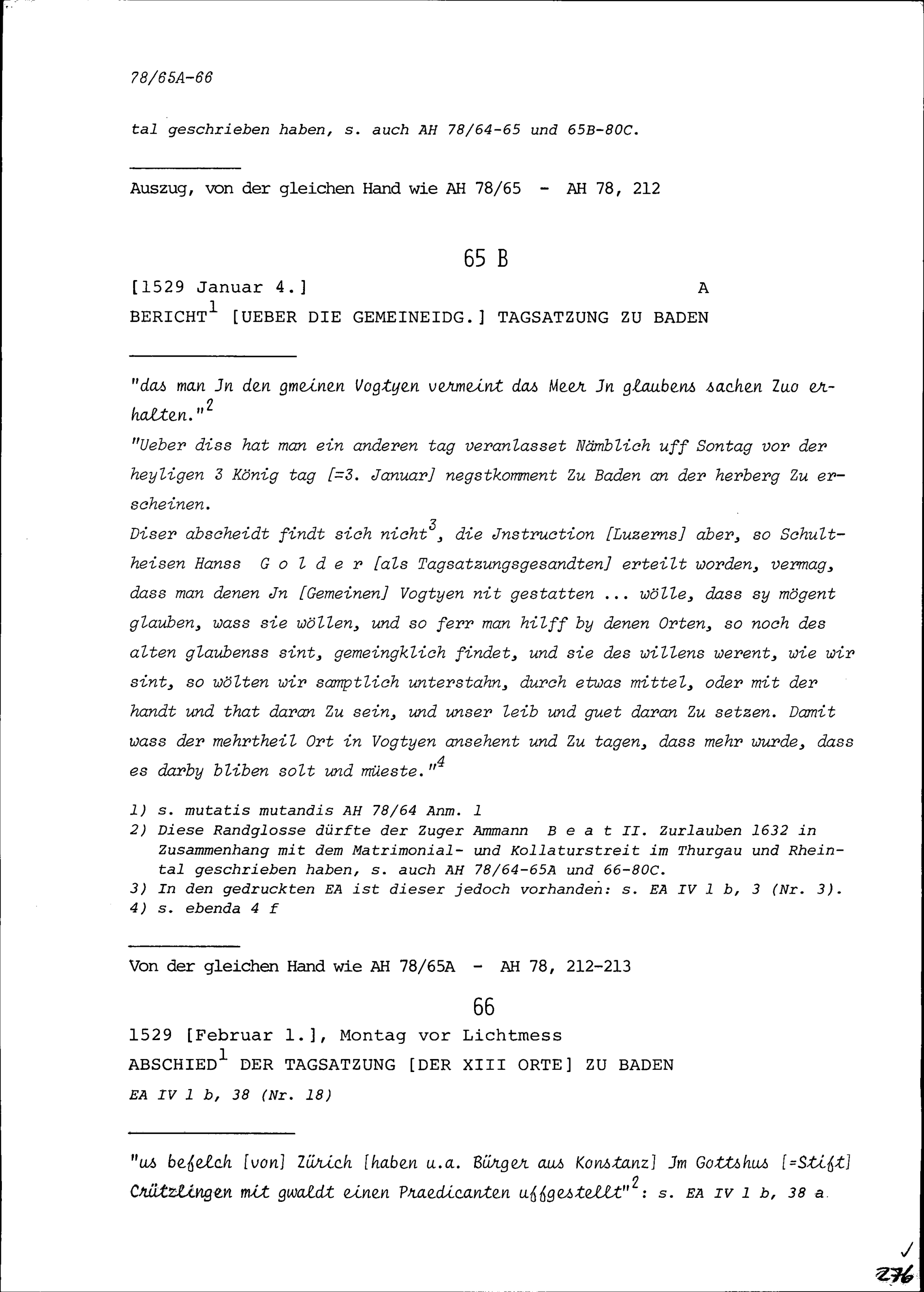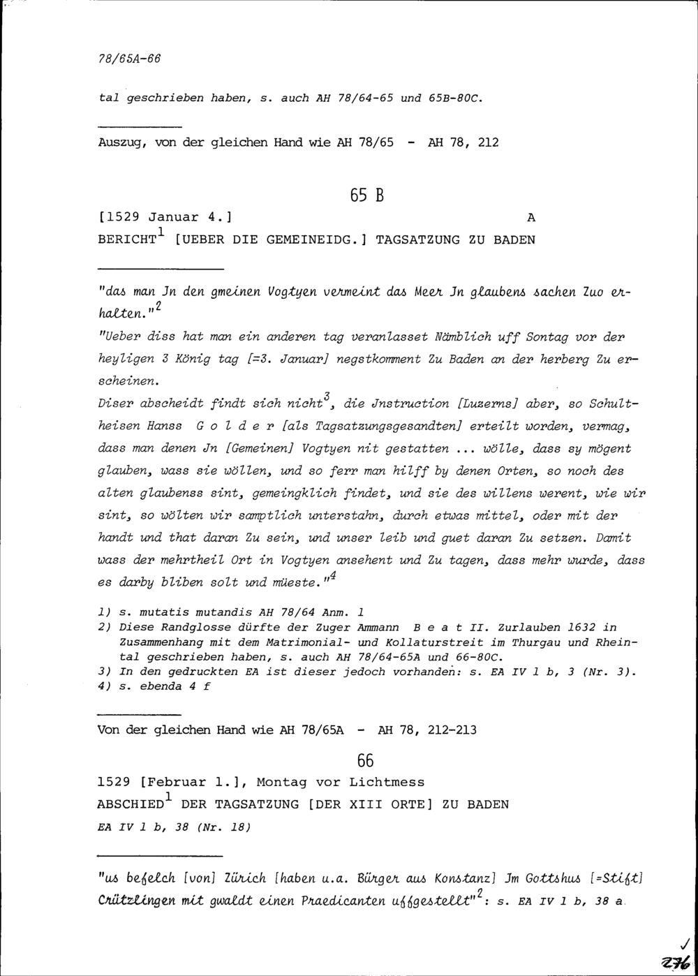 Bericht über die Tagsatzung in Baden