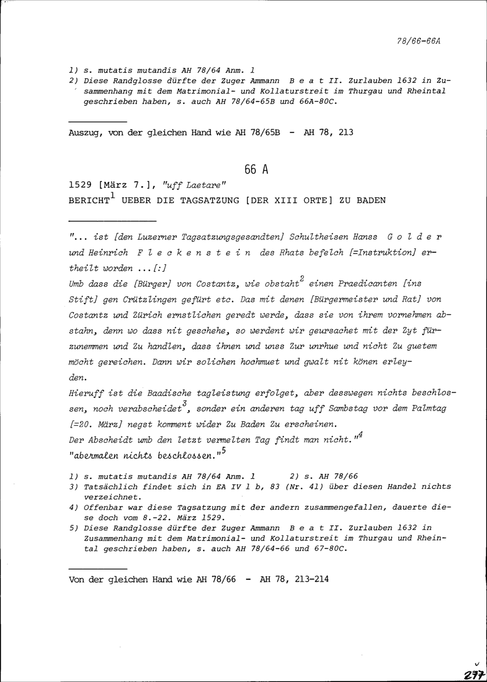 Bericht über die Tagsatzung der Dreizehn Orte zu Baden