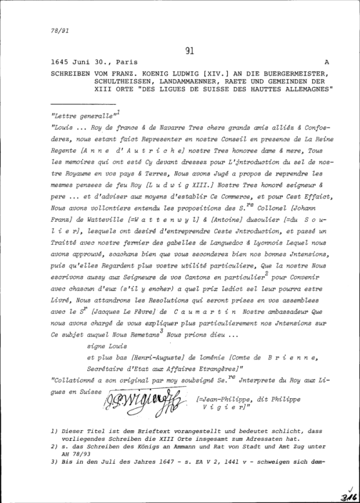 Schreiben von Ludwig XIV., König von Frankreich, an die Bürgermeister, Schultheissen, Landammänner, Räte und Gemeinden der Dreizehn Orte