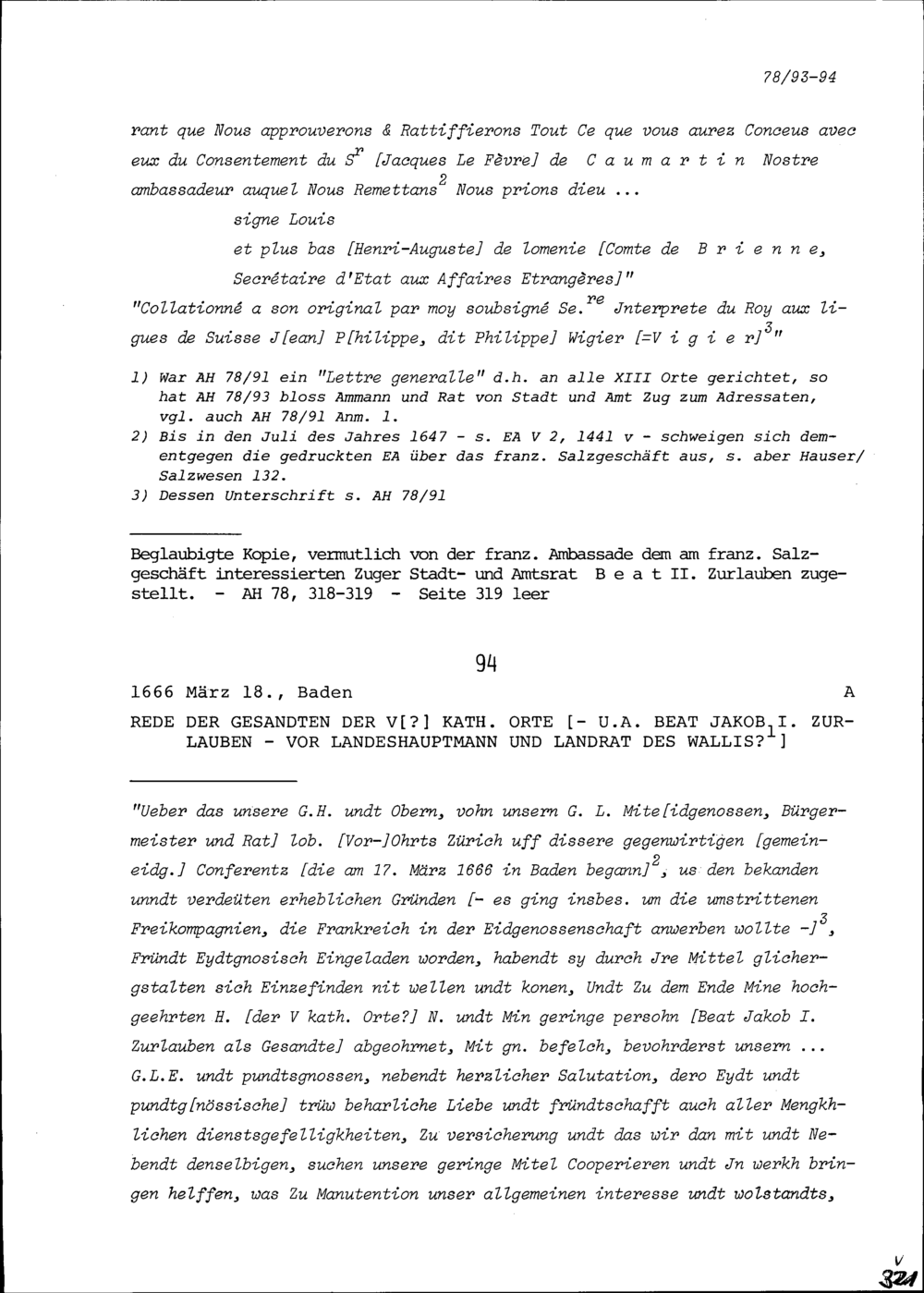Rede der Gesandten der Fünf Katholischen Orte vor Landeshauptmann und Landrat Wallis