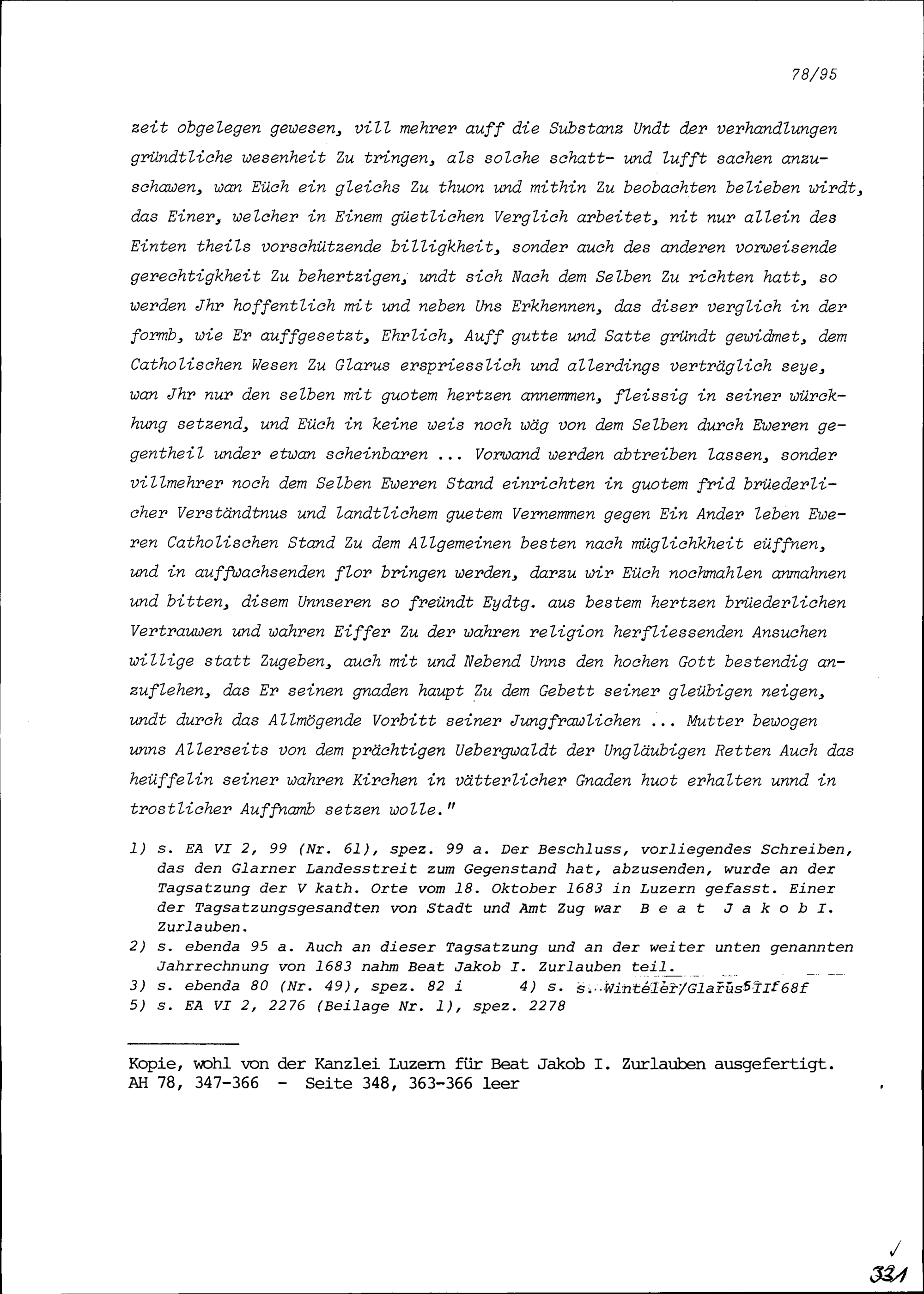Schreiben der Schultheissen, Landammännern und Räten der Sieben Katholischen Orte an Statthalter und Rat von Katholisch Glarus