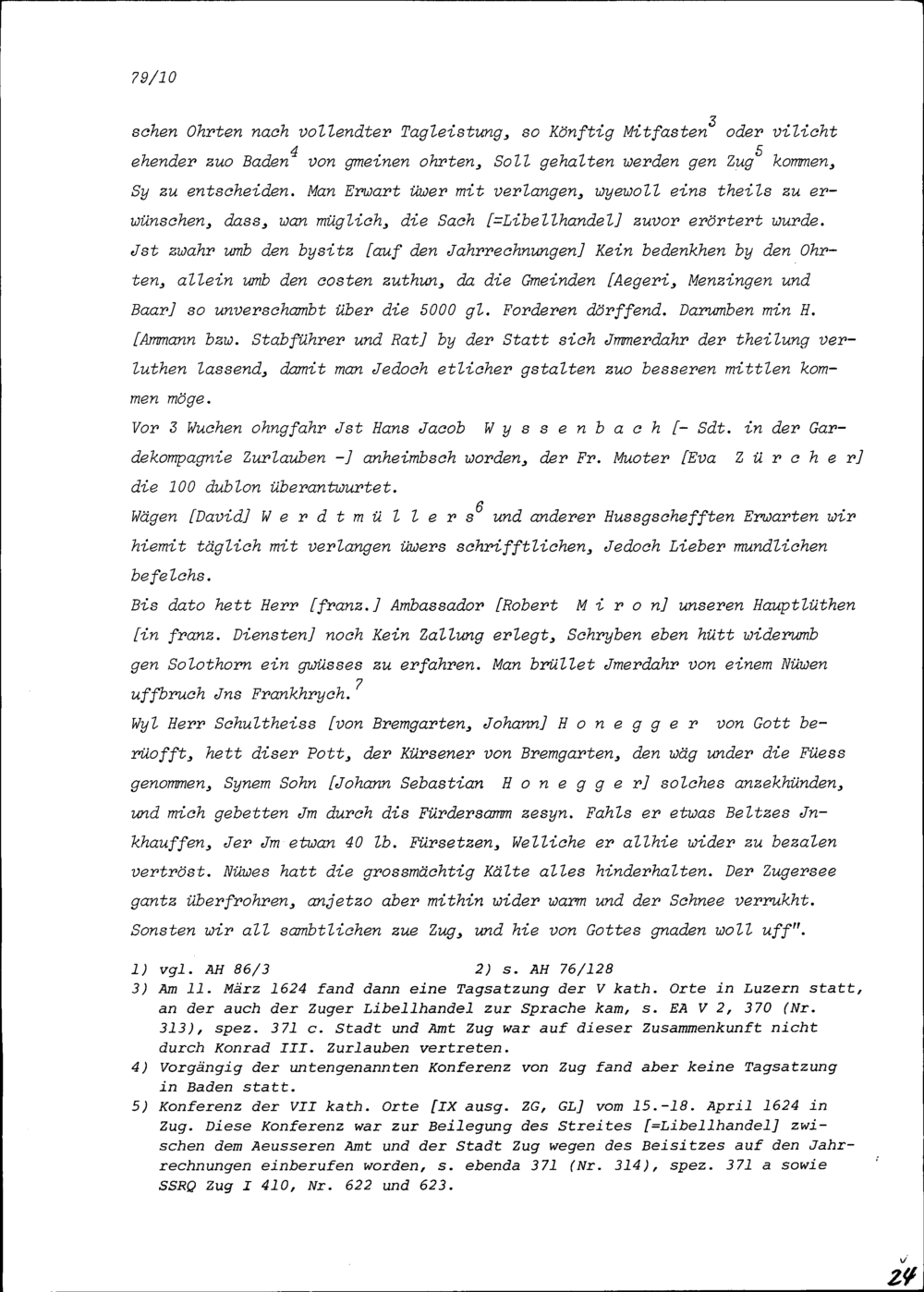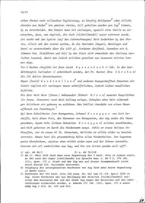 Schreiben von Beat II. Zurlauben, Landschreiber der Freien Ämter, an Konrad III....
