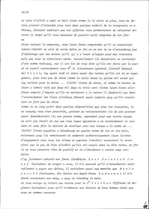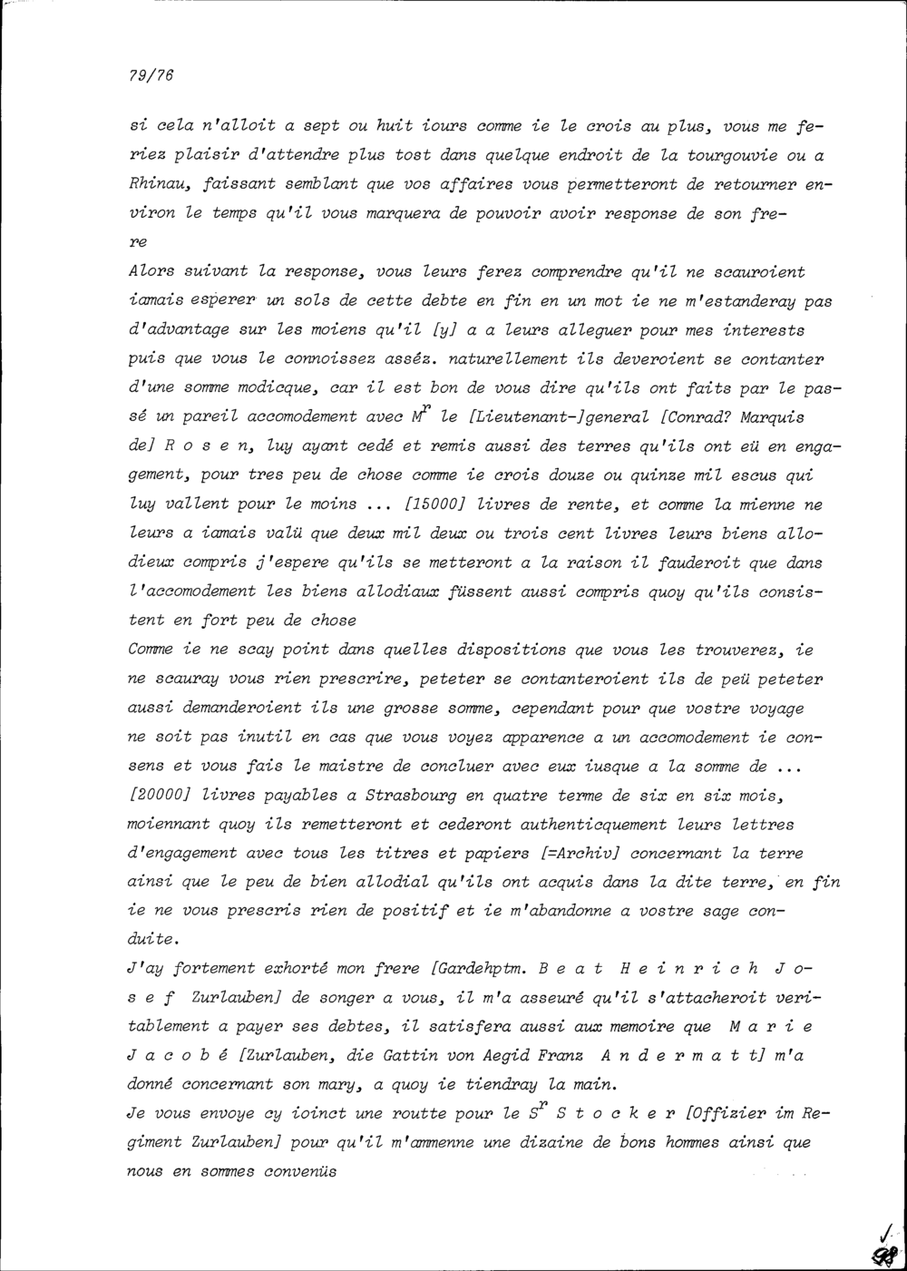 Schreiben von Beat Jakob Zurlauben, Oberst und Feldmarschall, an Beat Jakob II. Zurlauben