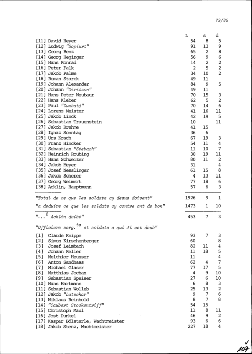 Abrechnung der Offiziere, Sergeanten und Soldaten der Kompanie von Beat Heinrich Josef Zurlauben, Hauptmann, selig, im Schweizer Regiment von Jost Brendlé, Oberst, bis 10. August 1706 und Aufteilung zwischen NN Acklin, Hauptmann, und Felix Oswald Kolin, Hauptmann