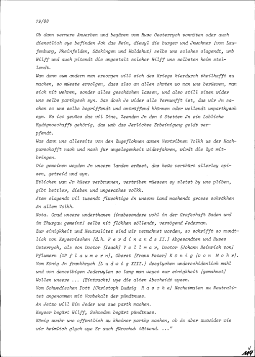 Entwurf, was die Vier Waldstätte zur besseren Sicherheit der Grenzen vorkehren sollten,...