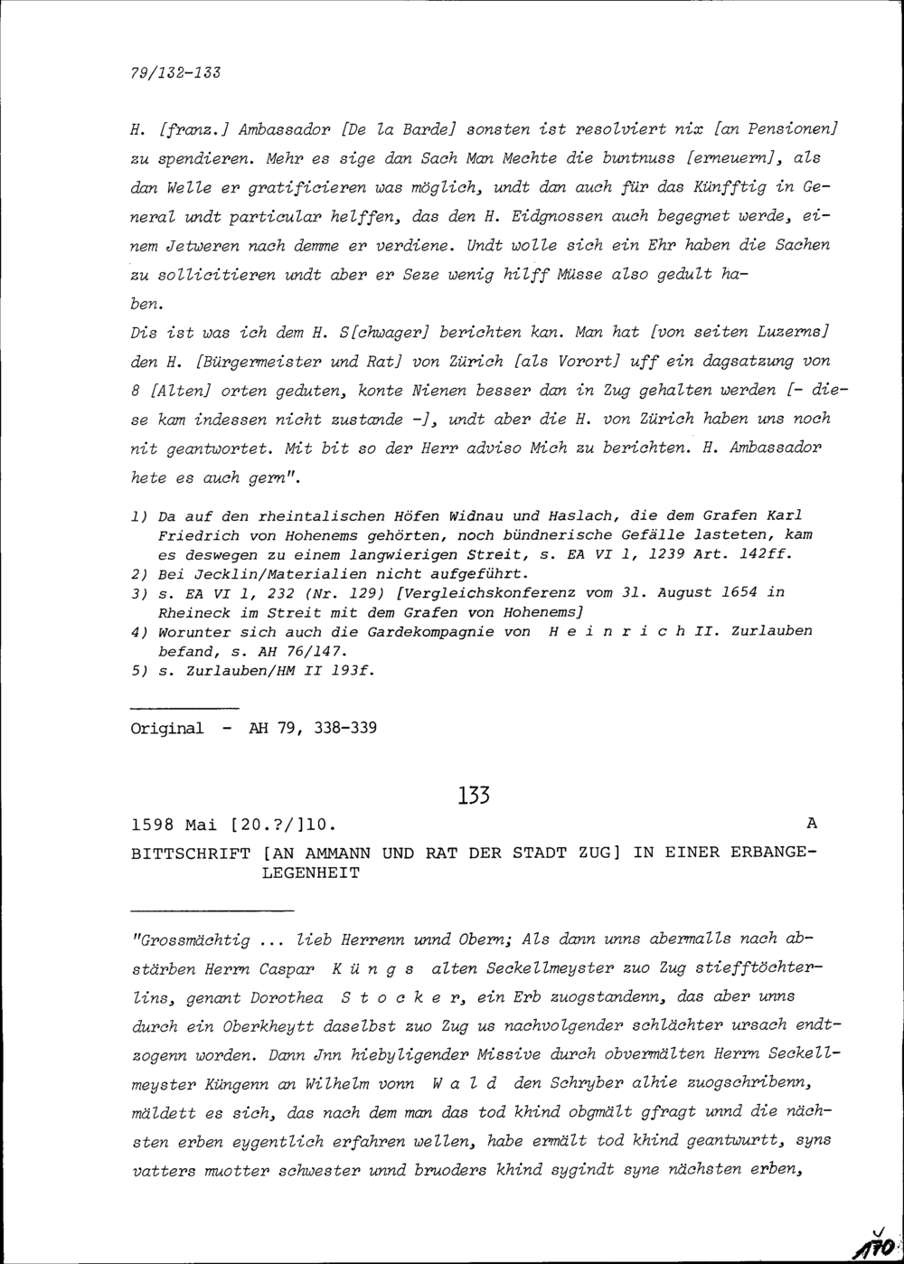Bittschrift an Ammann und Rat der Stadt Zug in einer Erbangelegenheit
