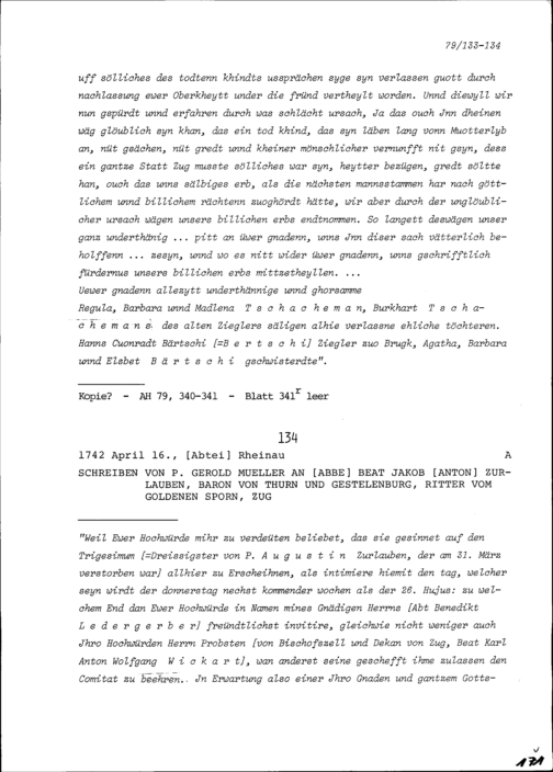 Schreiben von Gerold Müller, Konventuale, an Beat Jakob Anton Zurlauben, Priester, Zug