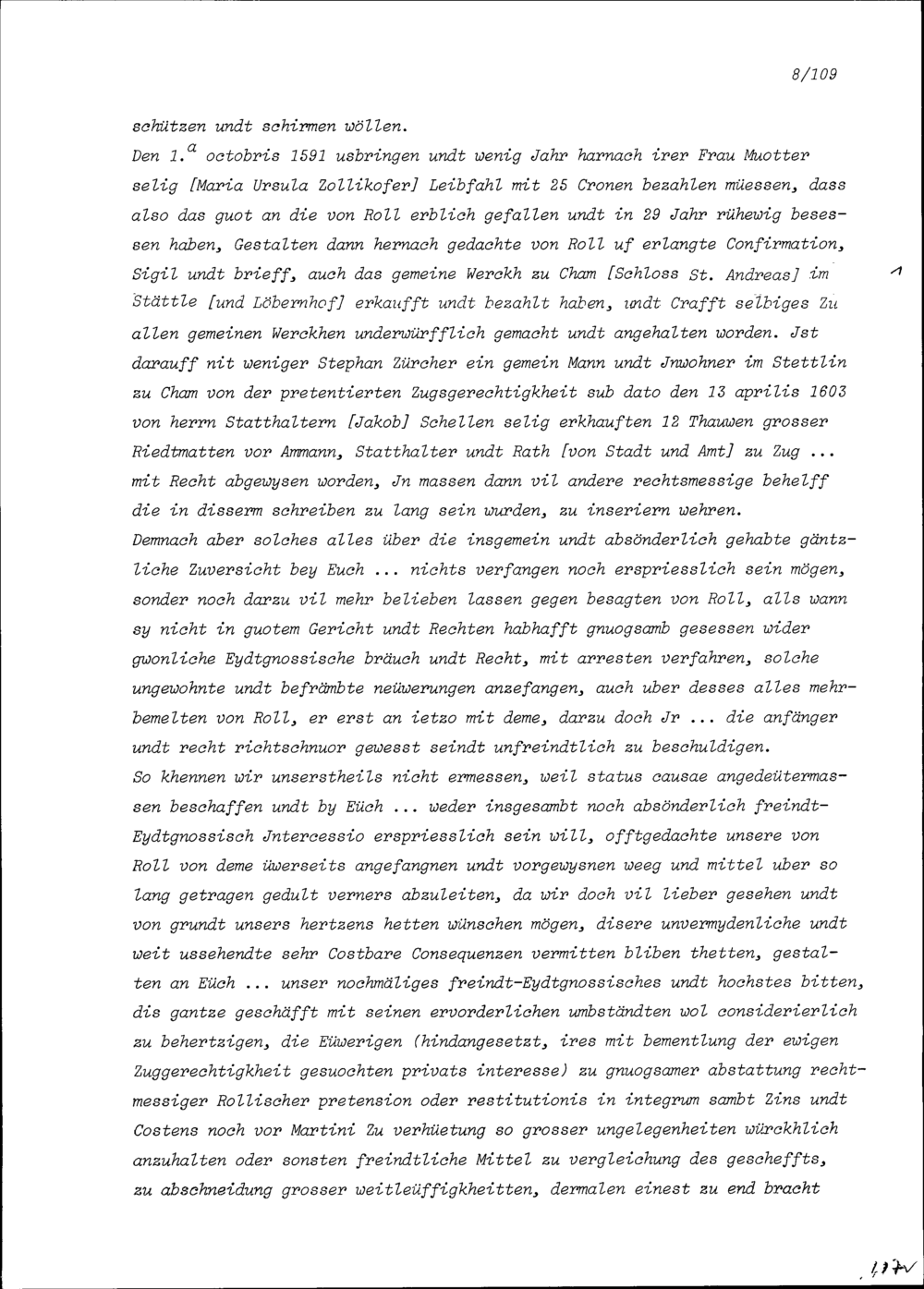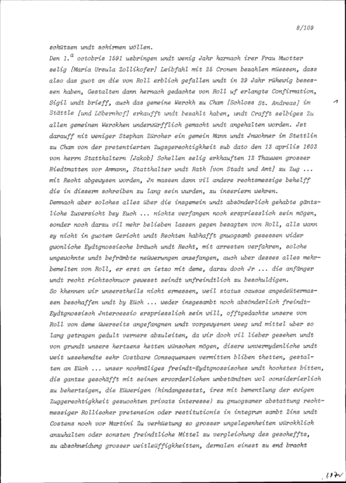 Schreiben des Landammanns und Bodenrats Uri an Ammann und Rat von Stadt und Amt Zug