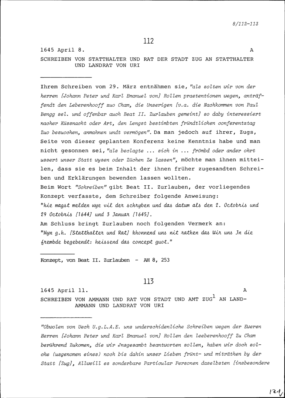 Schreiben des Statthalters und Rats der Stadt Zug an Statthalter und Landrat Uri