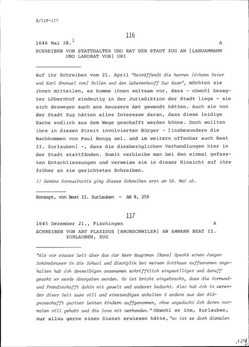 Schreiben des Statthalters und Rats der Stadt Zug an Landammann und Landrat Uri