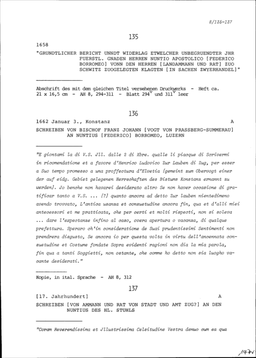 Bericht und Stellungnahme von Federico Borromeo, Nuntius, zu den Klagen von Landammann...