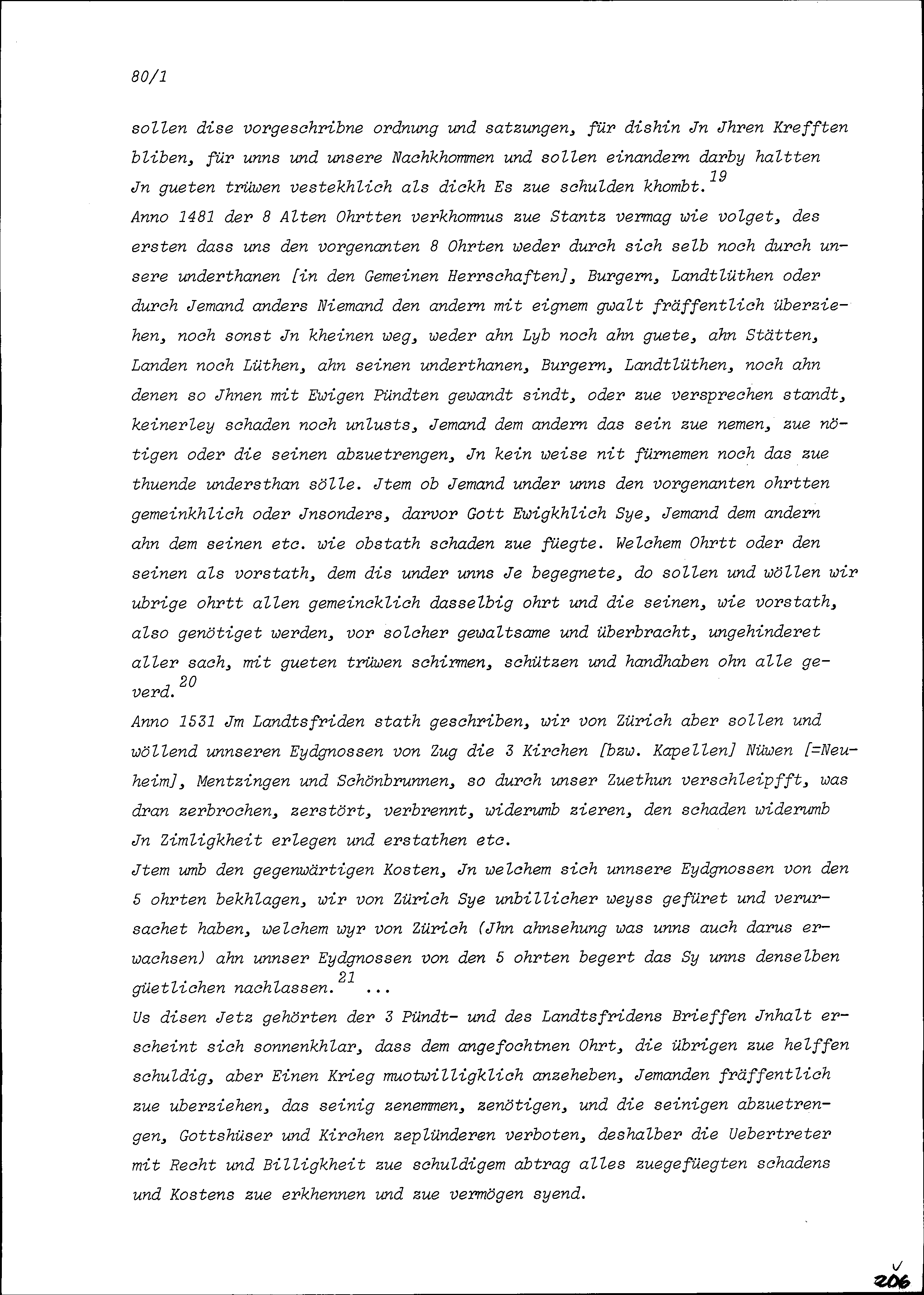 Beschwerden der Fünf Katholischen Orte Luzern, Uri, Schwyz, Unterwalden und Zug gegen...