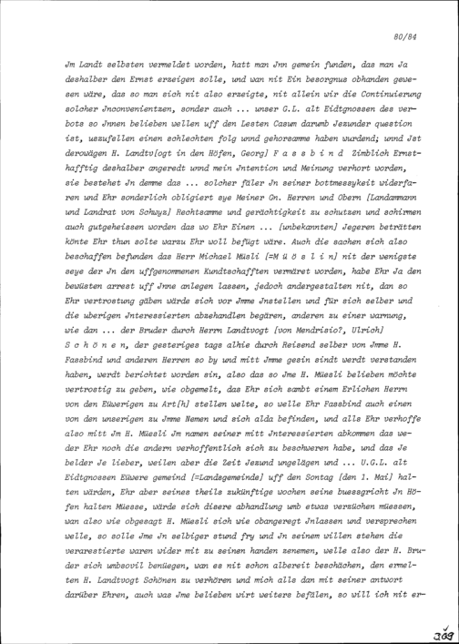 Schreiben von Wolfgang Dietrich Theodor Reding, Landammann, an Beat II. Zurlauben,...