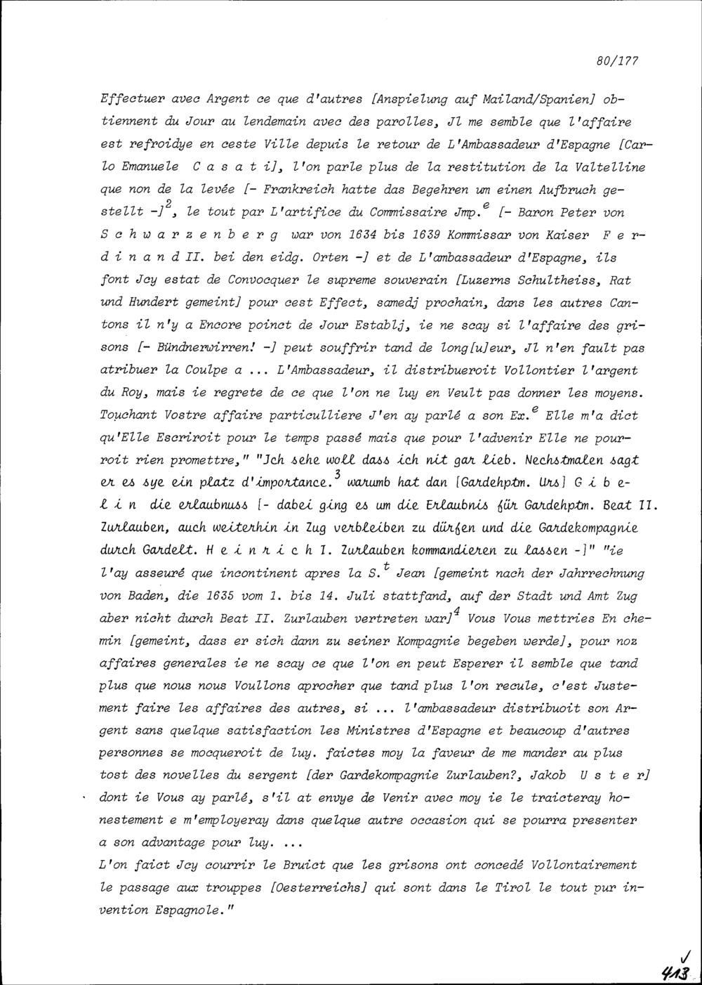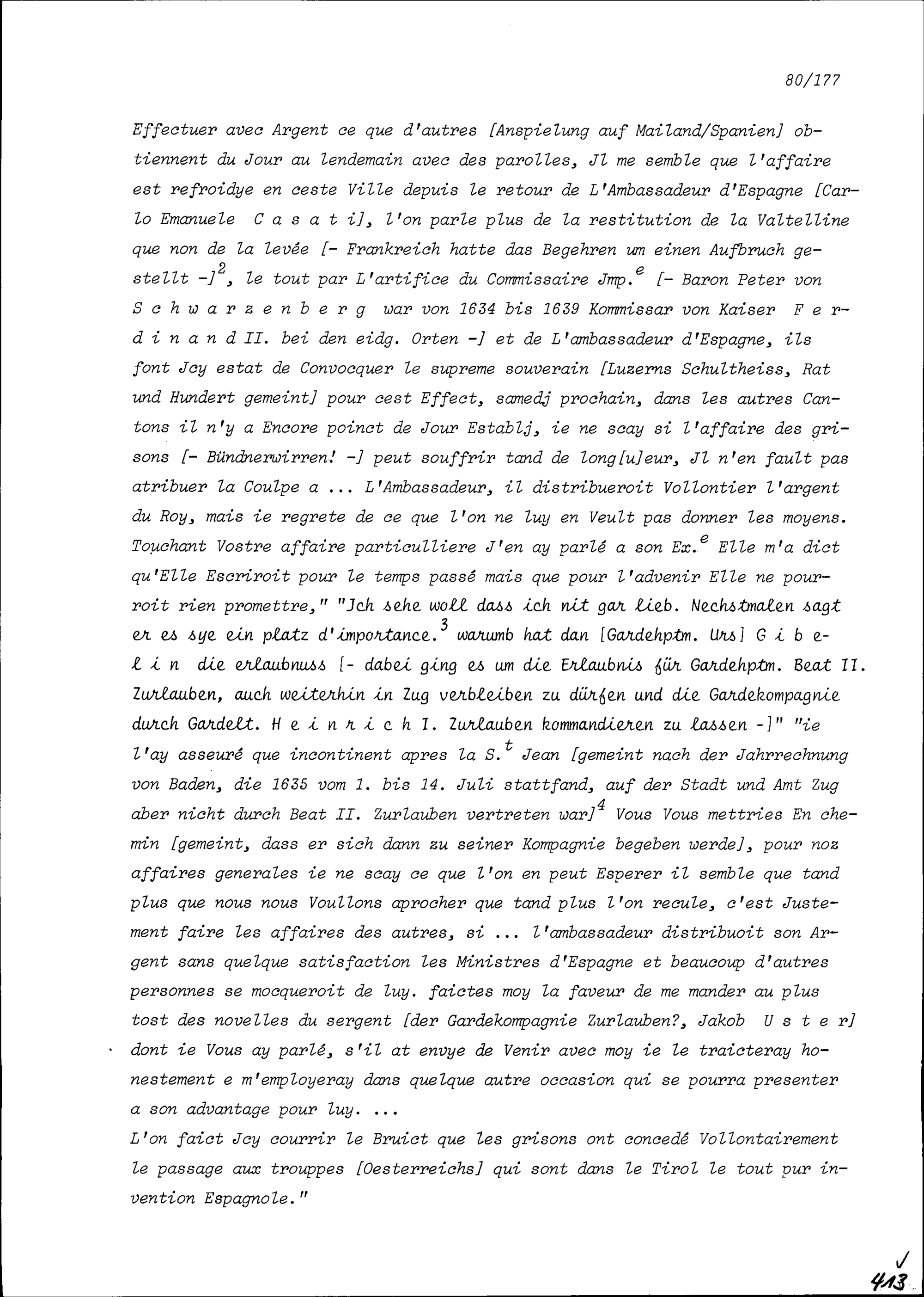 Schreiben von Jacques de Stavay-Mollondin, französischer Dolmetscher, an Beat II. Zurlauben, Altammann und Stadt- und Amtrat, Zug