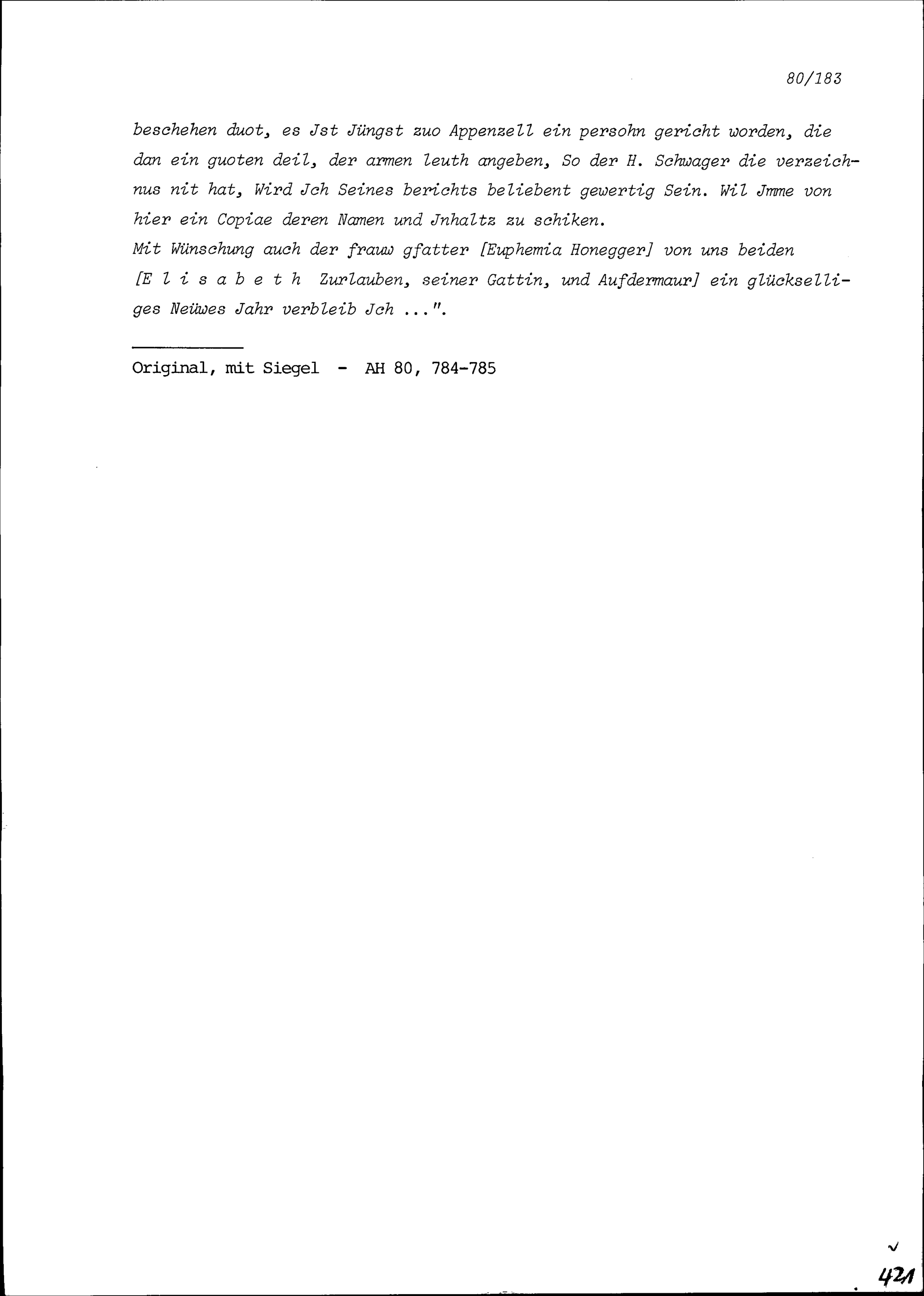 Schreiben von Balthasar Aufdermaur an Beat II. Zurlauben, Altammann und Stadt- und Amtrat, Zug