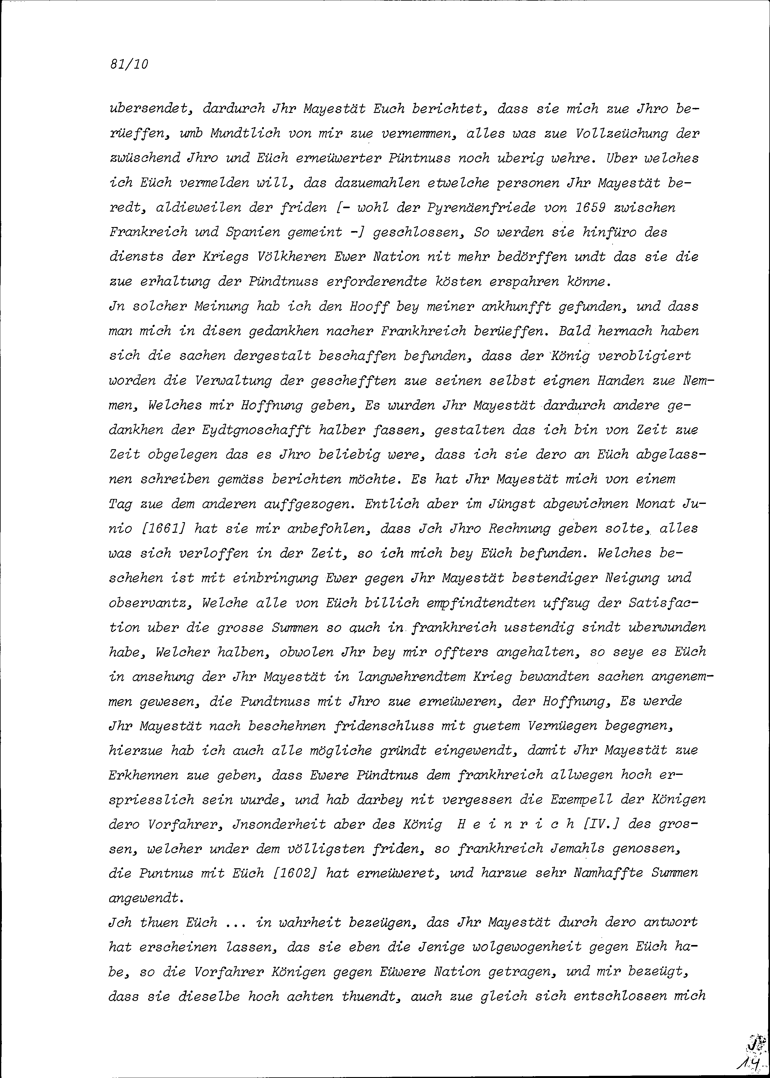 Vortrag von Jean de la Barde, Ambassador von Frankreich, anlässlich der Tagsatzung vom 19. und 20. Dezember 1661 in Solothurn