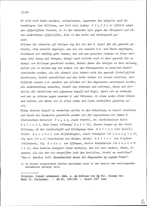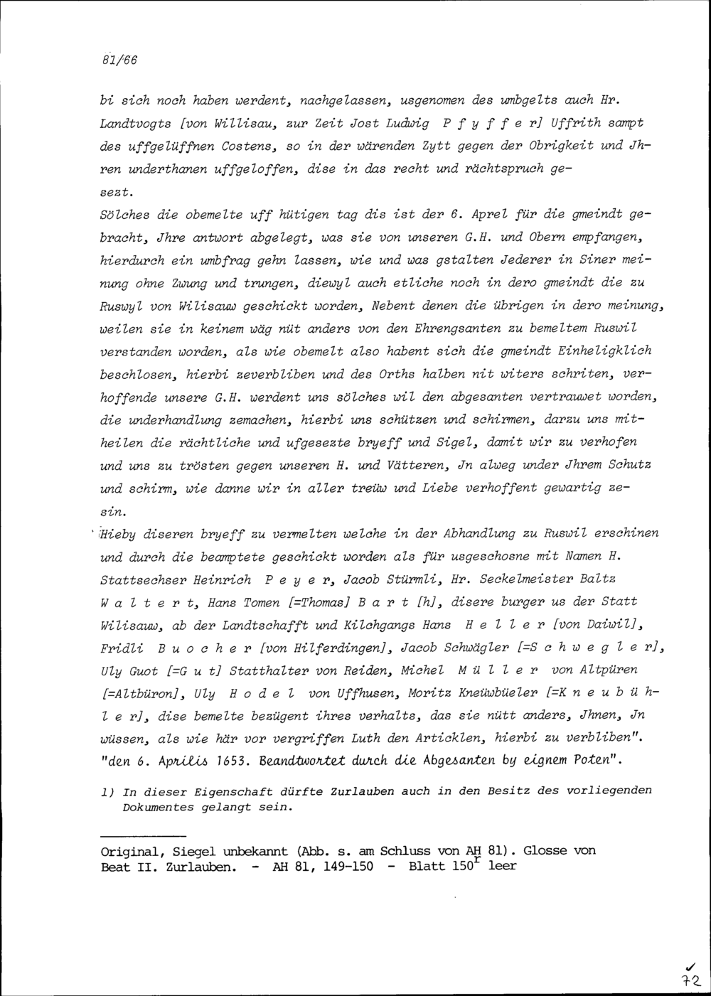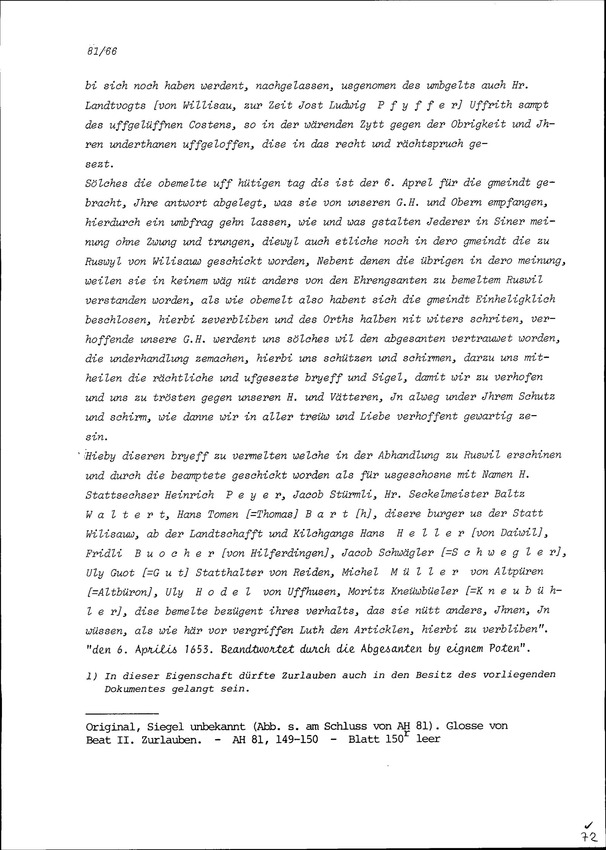 Schreiben der Landsgemeinde von Stadt und Amt Willisau an Schultheiss und Rat Luzern