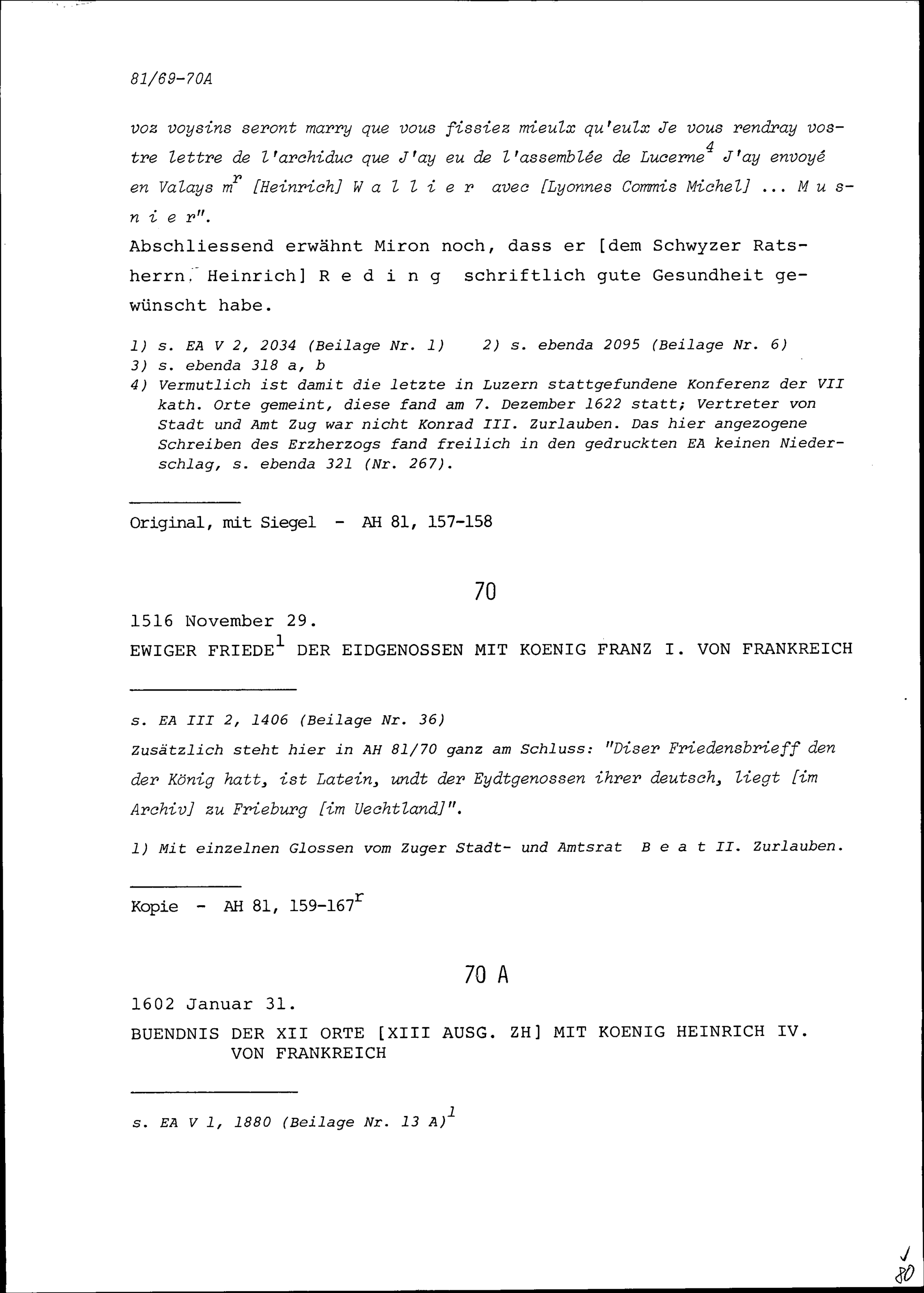 Ewiger Friede der Eidgenossen mit Franz I., König von Frankreich