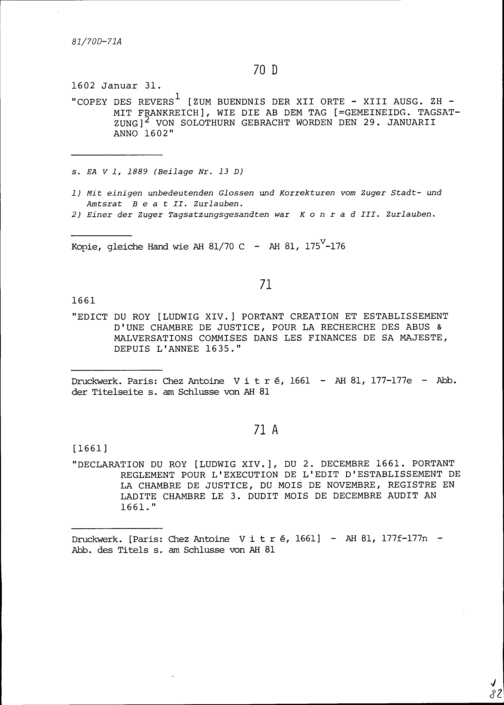 Revers zum Bündnis der Zwölf Orte mit Frankreich, beschlossen an der Tagsatzung zu Solothurn am 29. Januar 1602
