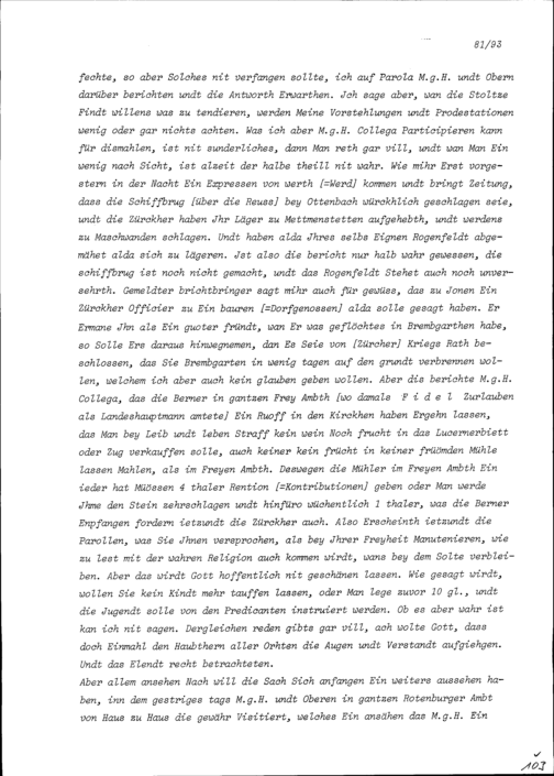 Schreiben von Heinrich Ludwig Göldlin von Tiefenau, Luzerner Ratsherr, an Karl Anton Letter, Kommandant von Frauenthal