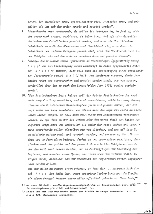 Vertrag betreffend Rechte der Stadt Diessenhofen, beschlossen an der Konferenz der...