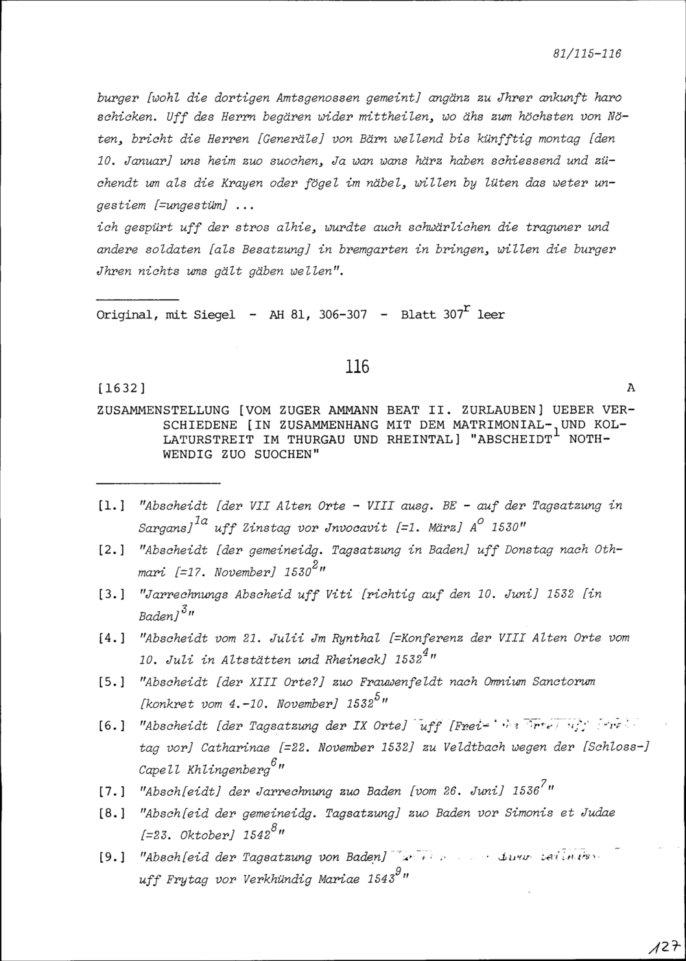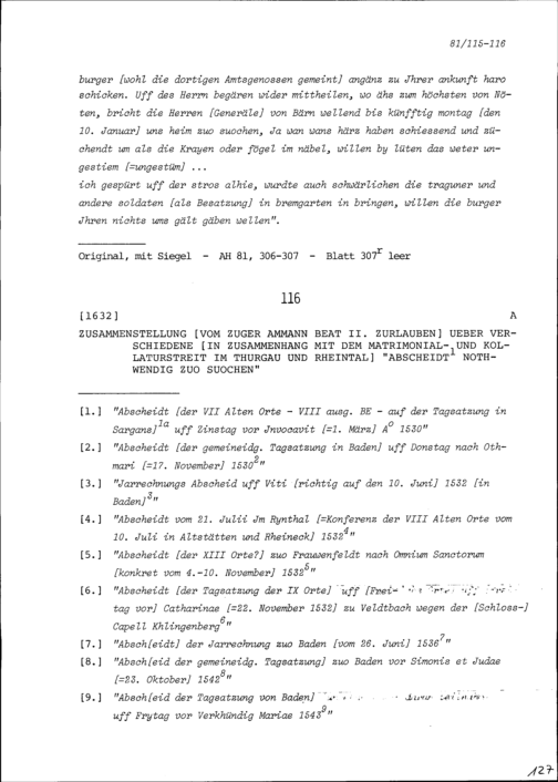 Abschiede betreffend den Matrimonial- und Kollaturstreit im Thurgau und Rheintal, zusammengestellt von Beat II. Zurlauben, Ammann