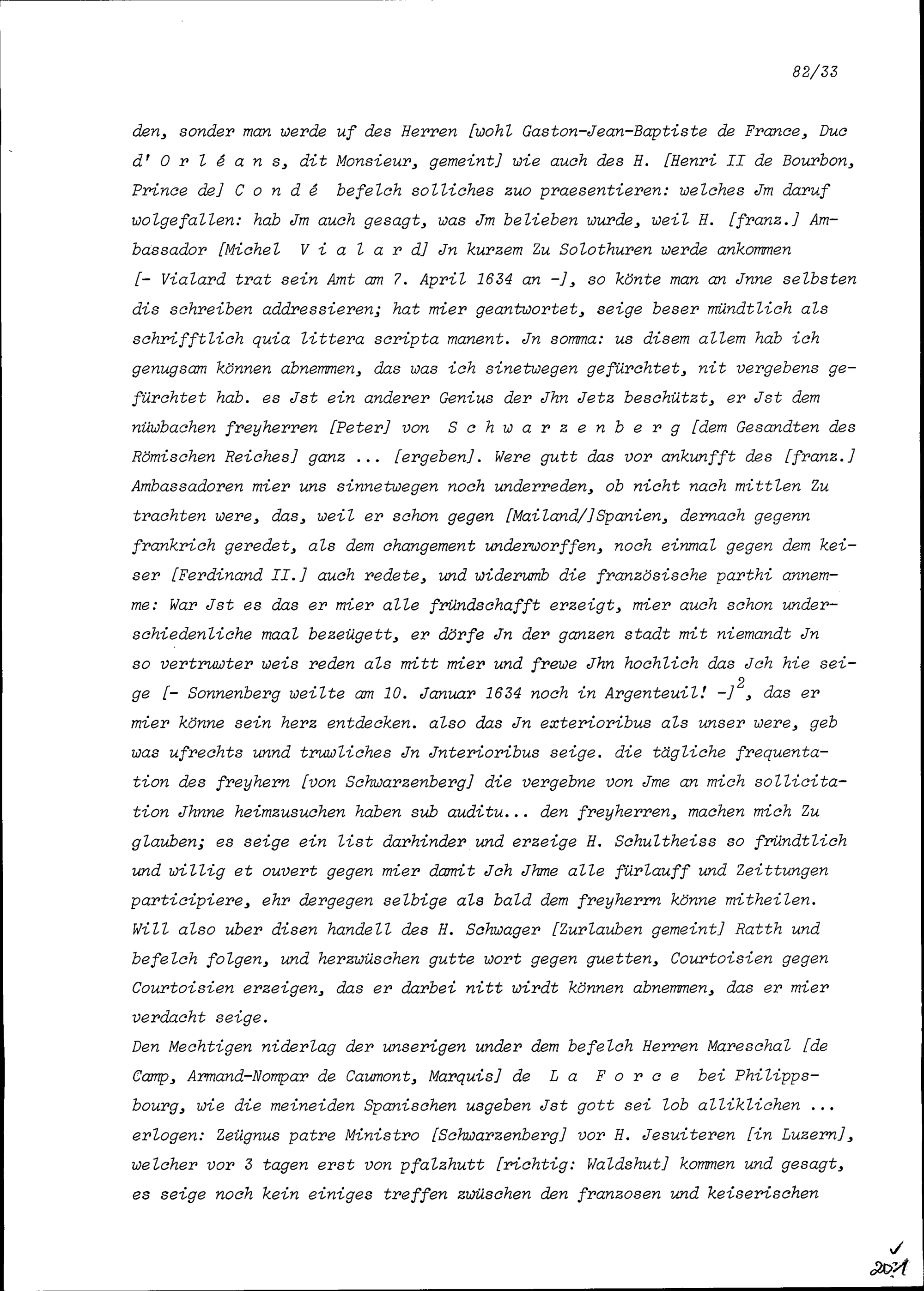 Schreiben von Alfons von Sonnenberg, Gardehauptmann, an Beat II. Zurlauben, Amma...