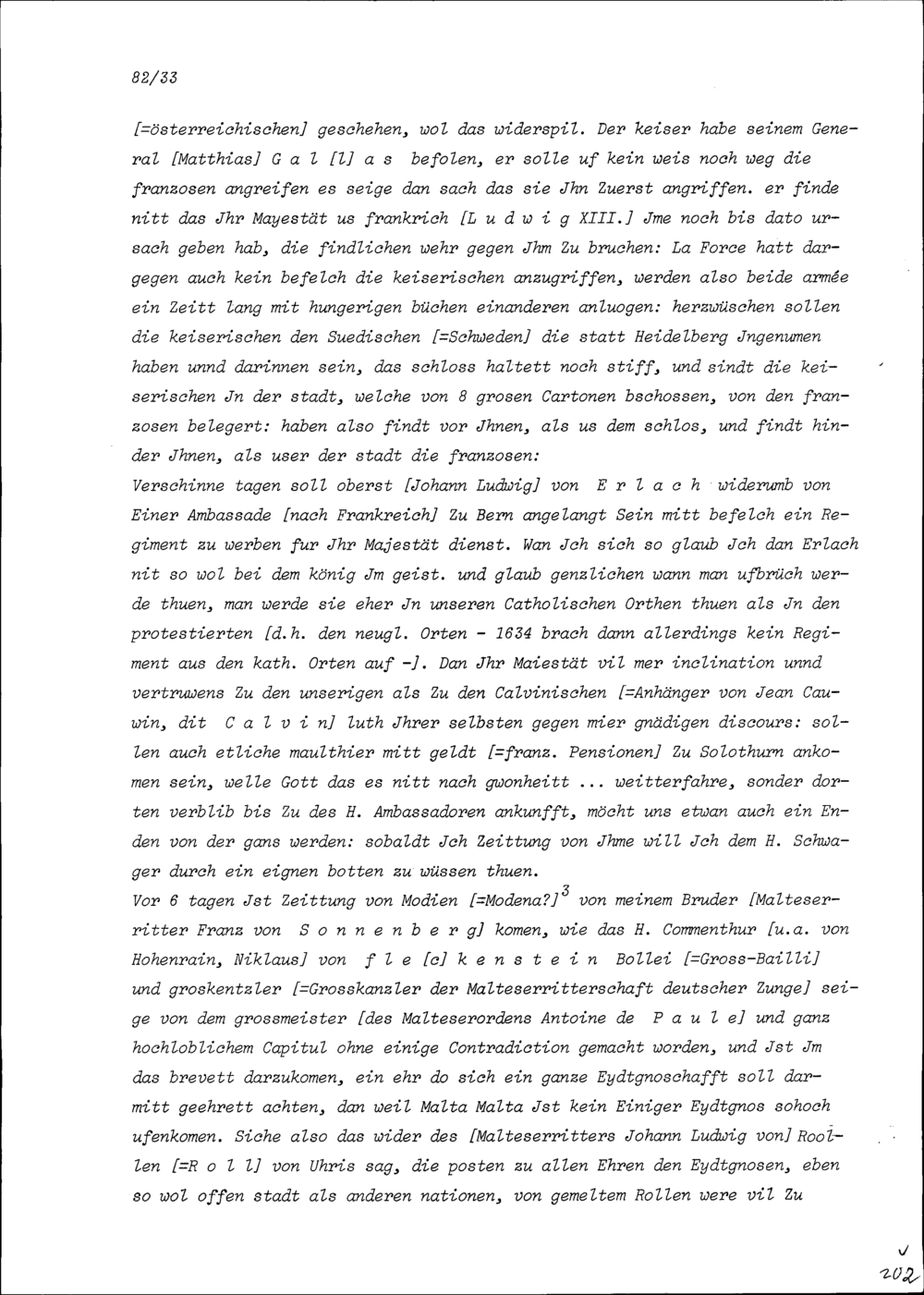 Schreiben von Alfons von Sonnenberg, Gardehauptmann, an Beat II. Zurlauben, Amma...