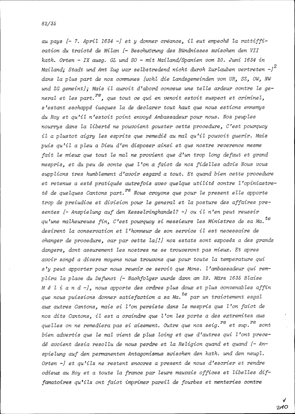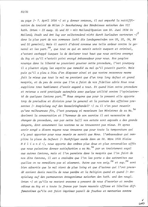 Schreiben von Beat II. Zurlauben, von Jost Bircher und von Heinrich Reding an François Le Clerc de Tremblay, genannt Le Père Joseph