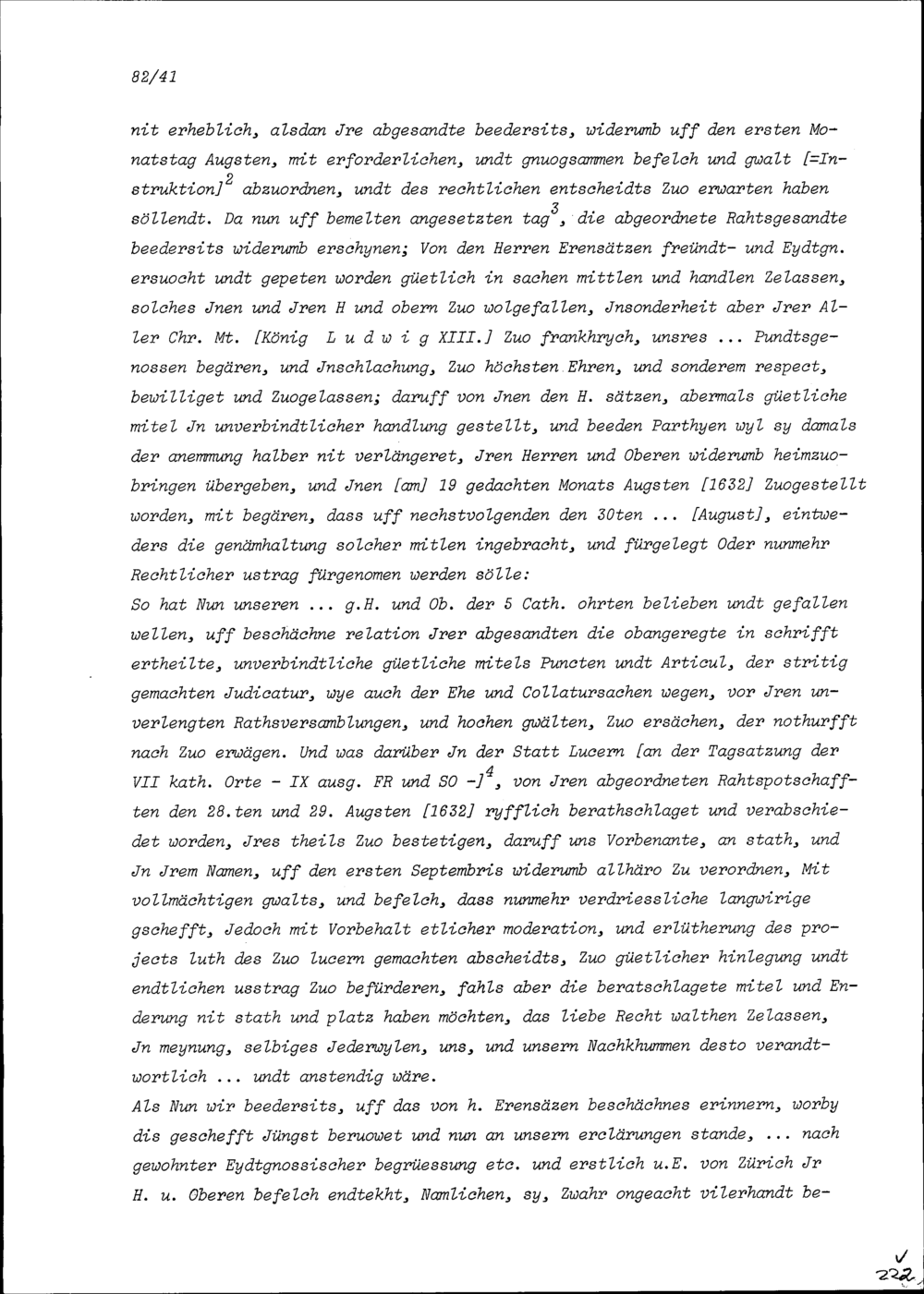 Notiz von Beat II. Zurlauben, Zuger Tagsatzungsgesandter, über die eidgenössischen Schiedsverhandlungen vom 3. August bis 7. September 1632 in Baden