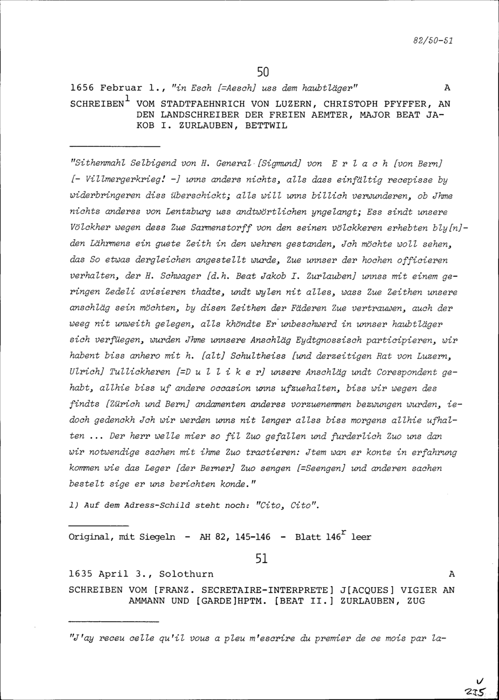 Schreiben von Christoph Pfyffer, Stadtfähnrich von Luzern, an Beat Jakob I. Zurlauben, Landschreiber der Freien Ämter und Major, Bettwil