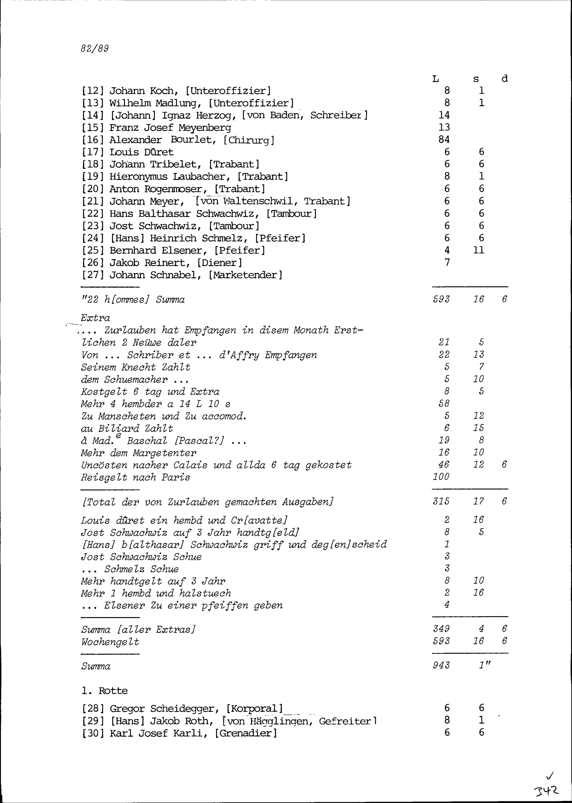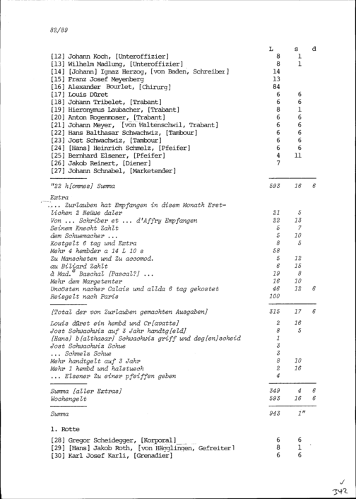Mannschaftsrodel der Kompanie von Beat Jakob II. Zurlauben im Regiment Pfyffer