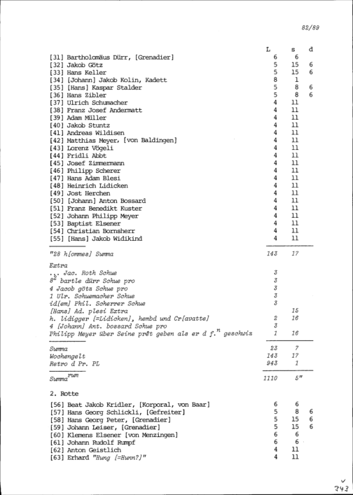 Mannschaftsrodel der Kompanie von Beat Jakob II. Zurlauben im Regiment Pfyffer