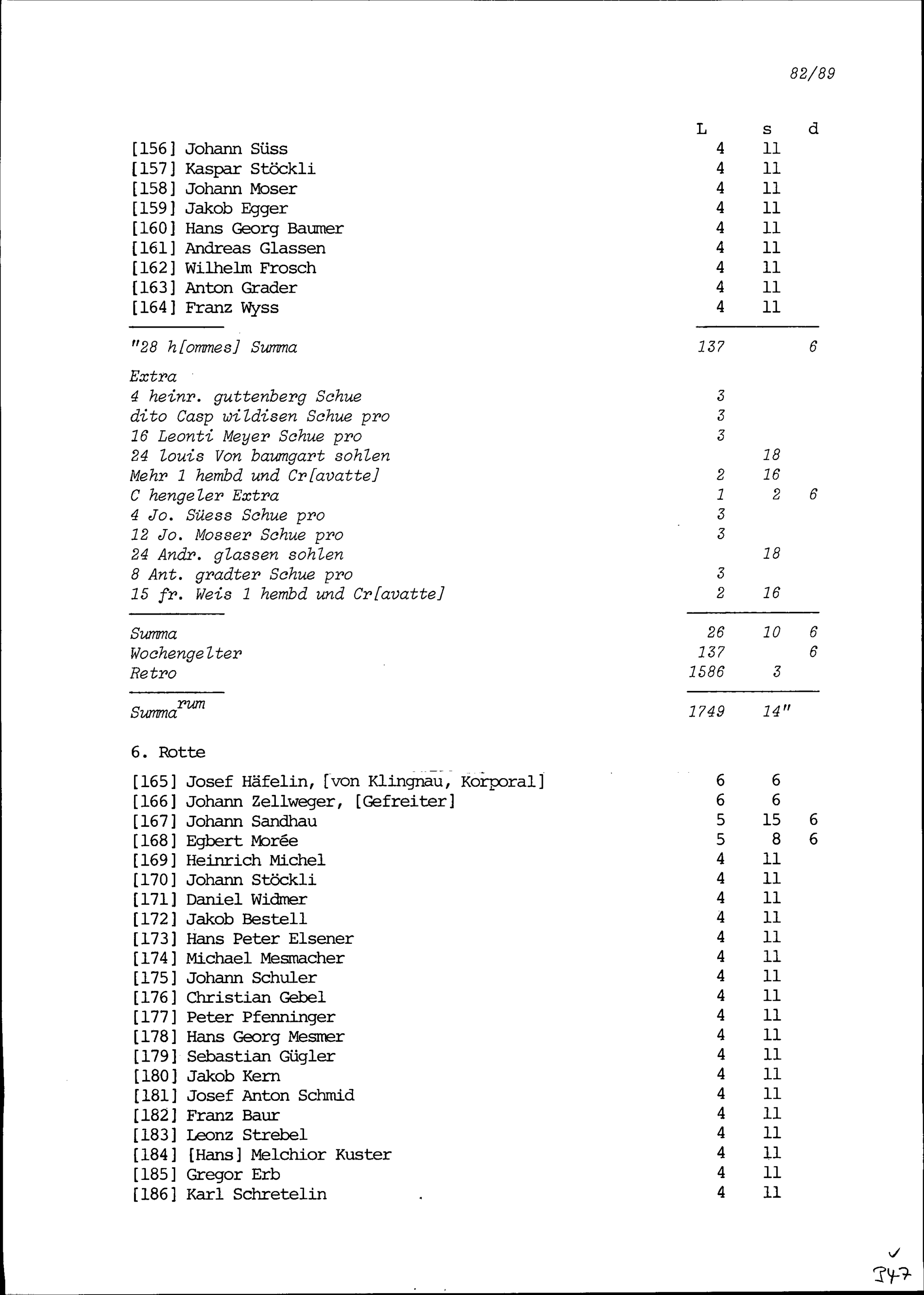 Mannschaftsrodel der Kompanie von Beat Jakob II. Zurlauben im Regiment Pfyffer