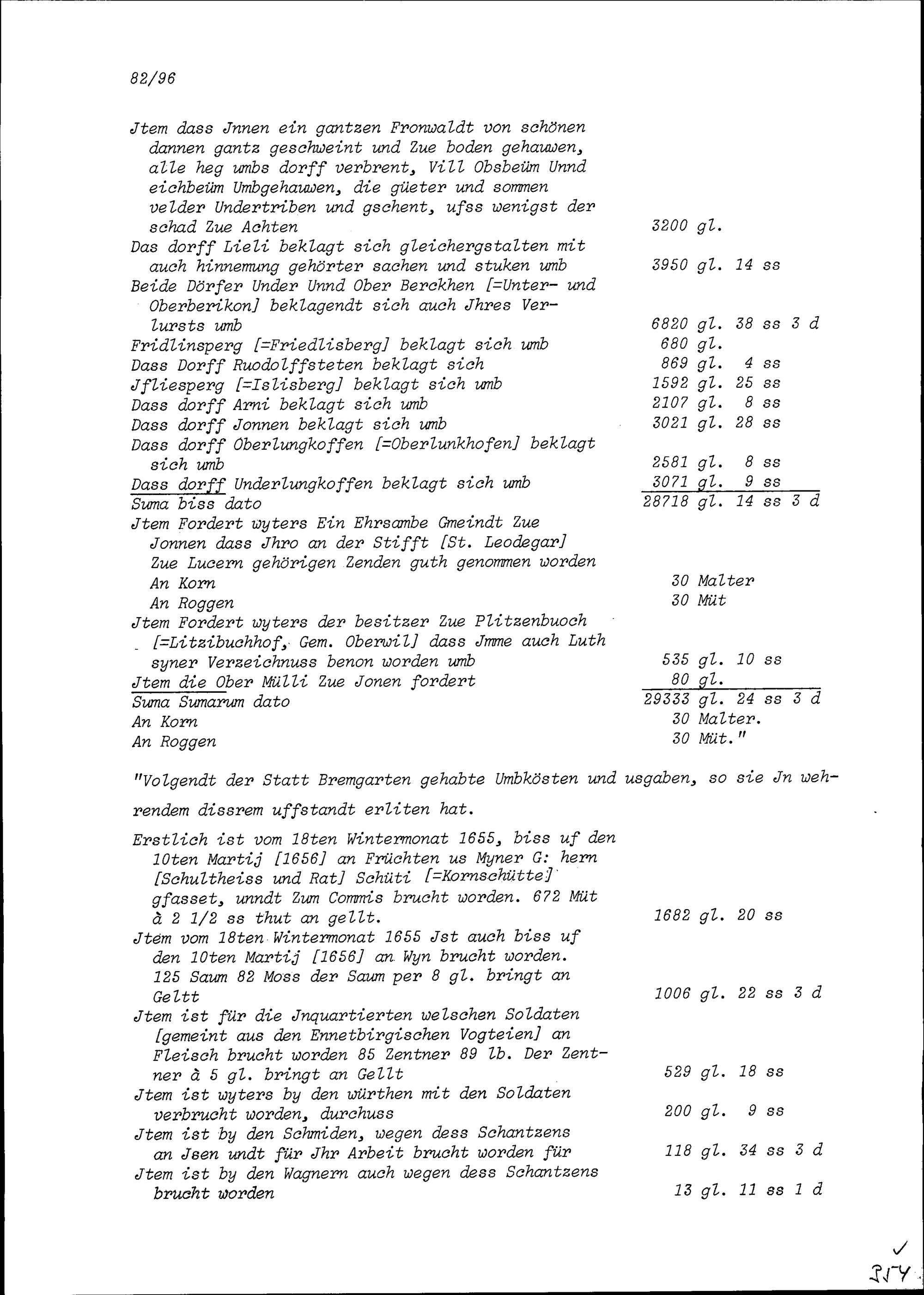 Kriegsschäden der Dörfer im Kelleramt und Niederamt sowie der Stadt Bremgarten