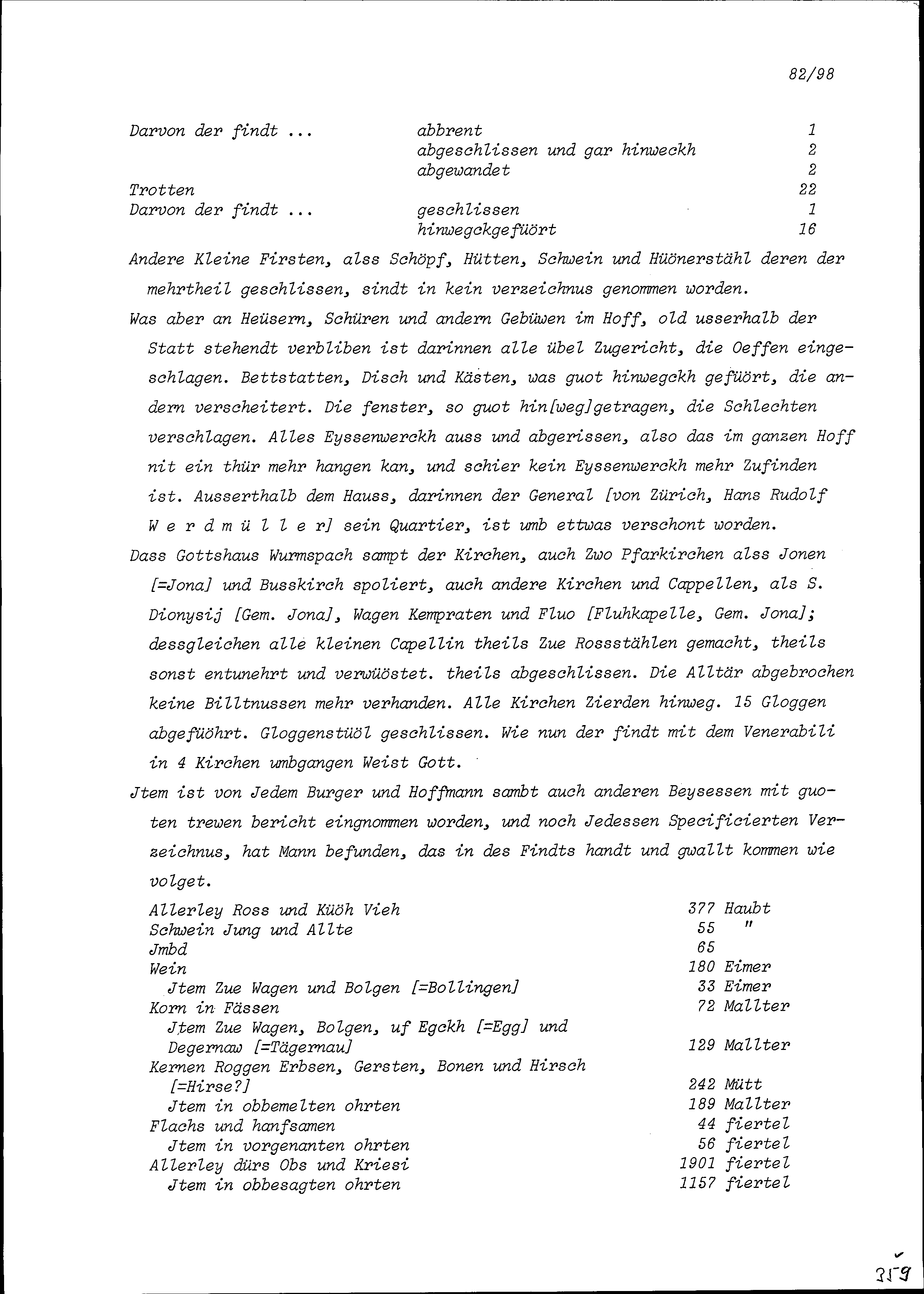Kriegsschäden von Rapperswil und umliegender Dörfer